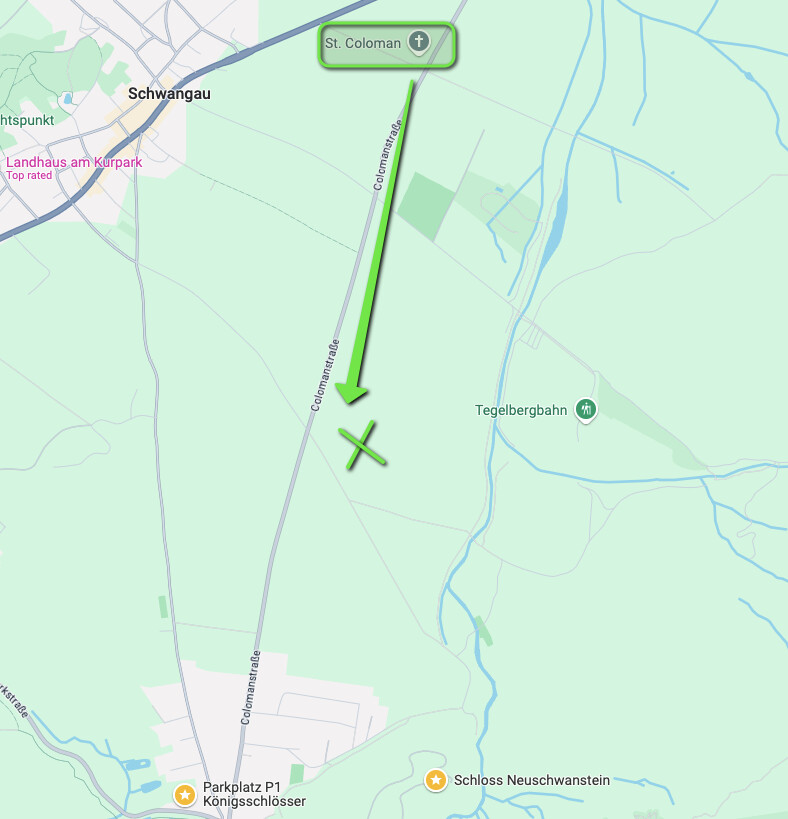 下面是新天鹅堡的地图,右侧是玛丽亚桥,左侧是通往新天鹅堡的人行道: