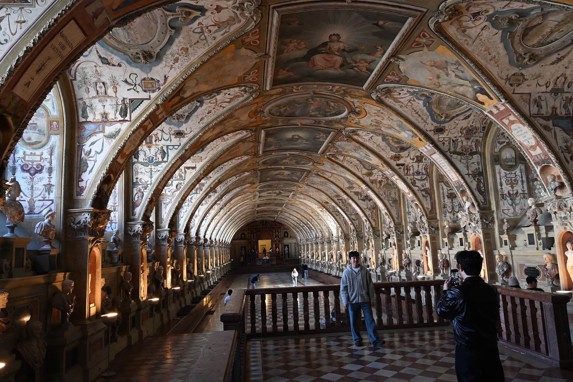 这里是慕尼黑早期王室的居所,虽然繁华程度稍逊于后来修建的宁芬堡宫,但仍有几个令人印象深刻的看点。比如摆满罗马历代皇帝与巴伐利亚国王雕像的古董大厅——大厅的拱顶结构和壁画都值得好好欣赏一番: