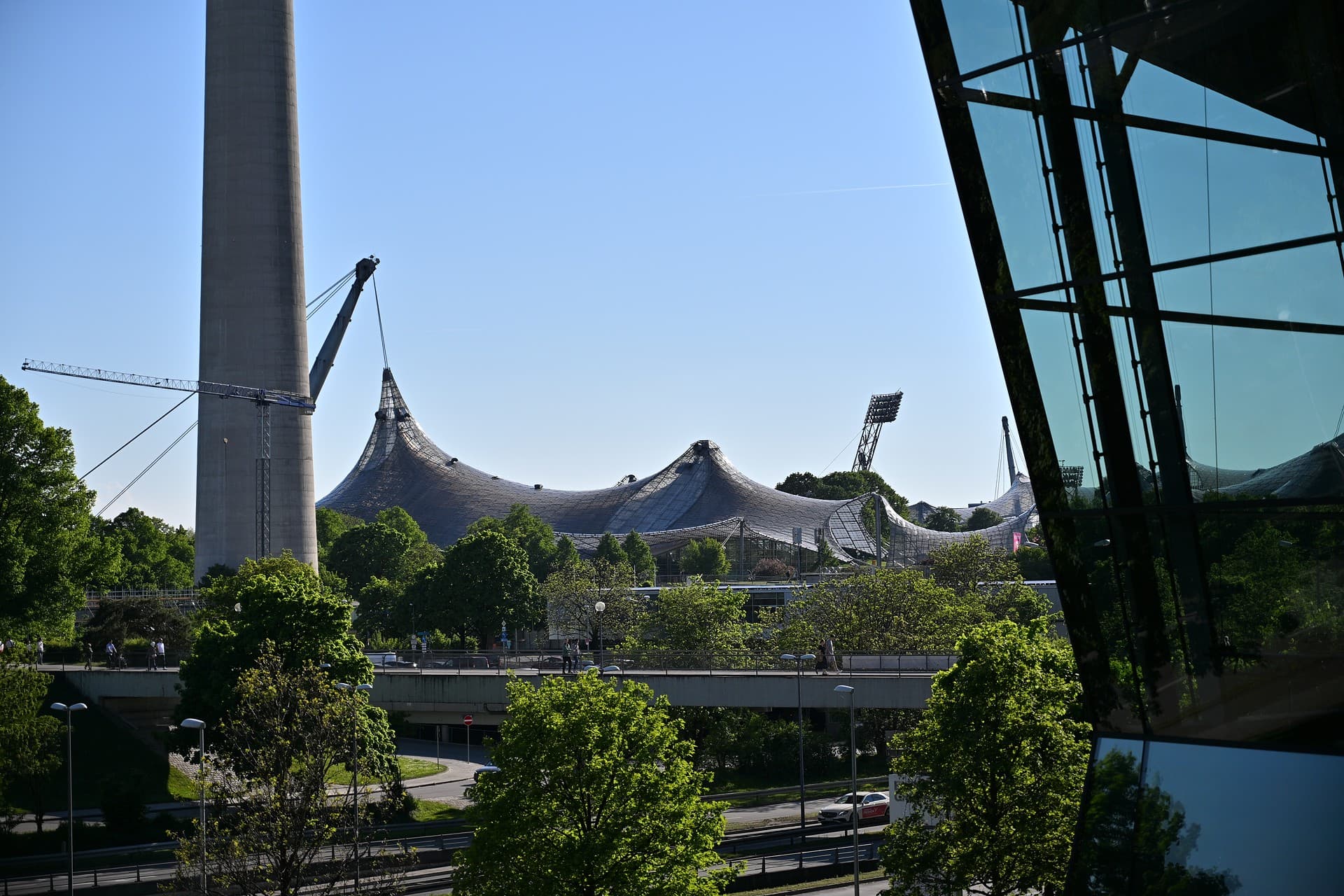 宝马博物馆隔壁就是慕尼黑奥运场馆。受时间所限没进去,远远看看那座悬挑屋顶依旧科幻感拉满——别忘了,它可是 1972 年的建筑!