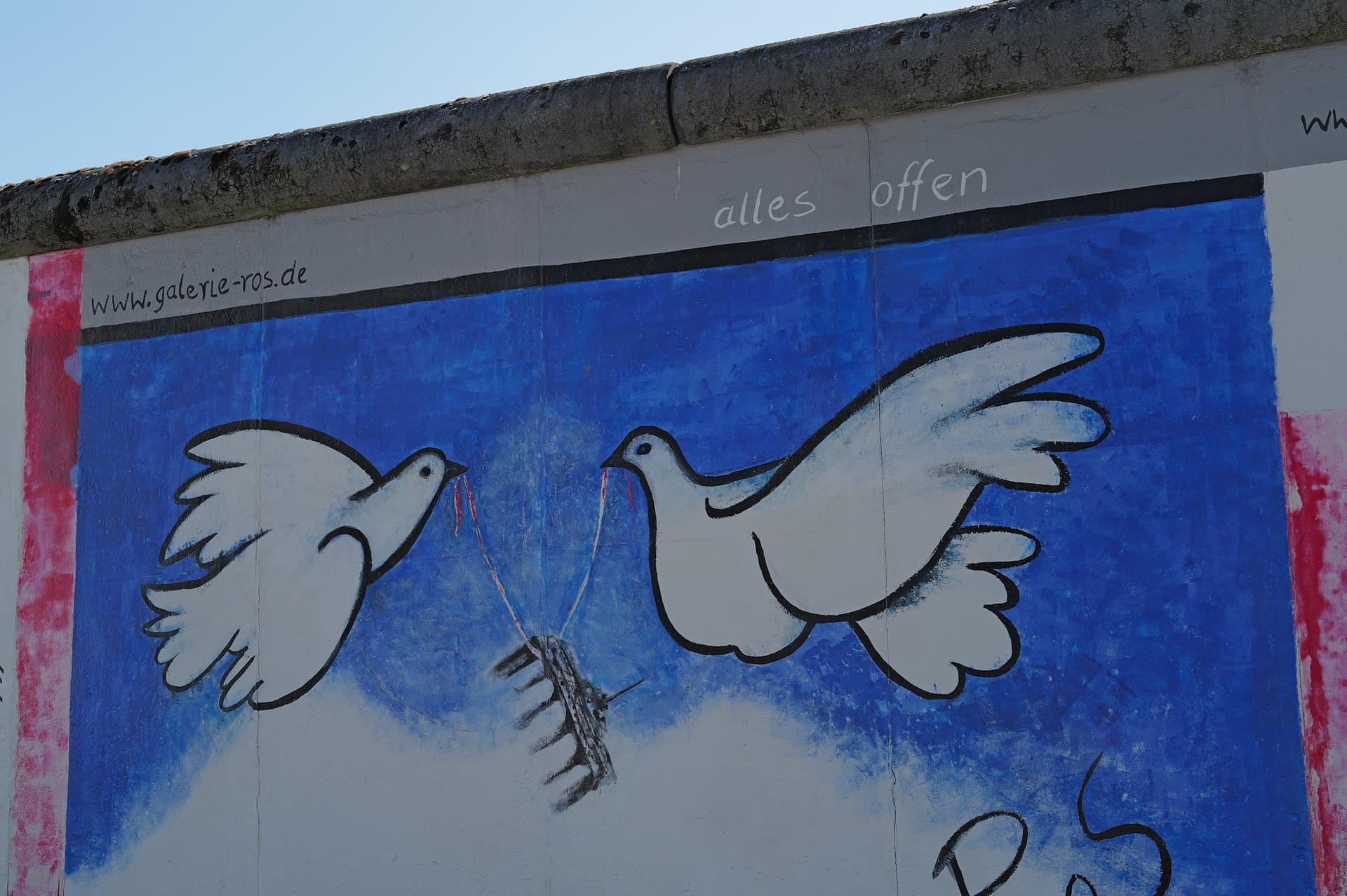 这是一个名气大于实际的艺术墙。现在保存完好的又有艺术的柏林墙位于东德深处,开车从宾馆过去大概要半个多小时,停车然后才能看到这些著名的涂鸦画们。不过现在涂鸦也与时俱进了,有些还贴上了二维码求打赏。