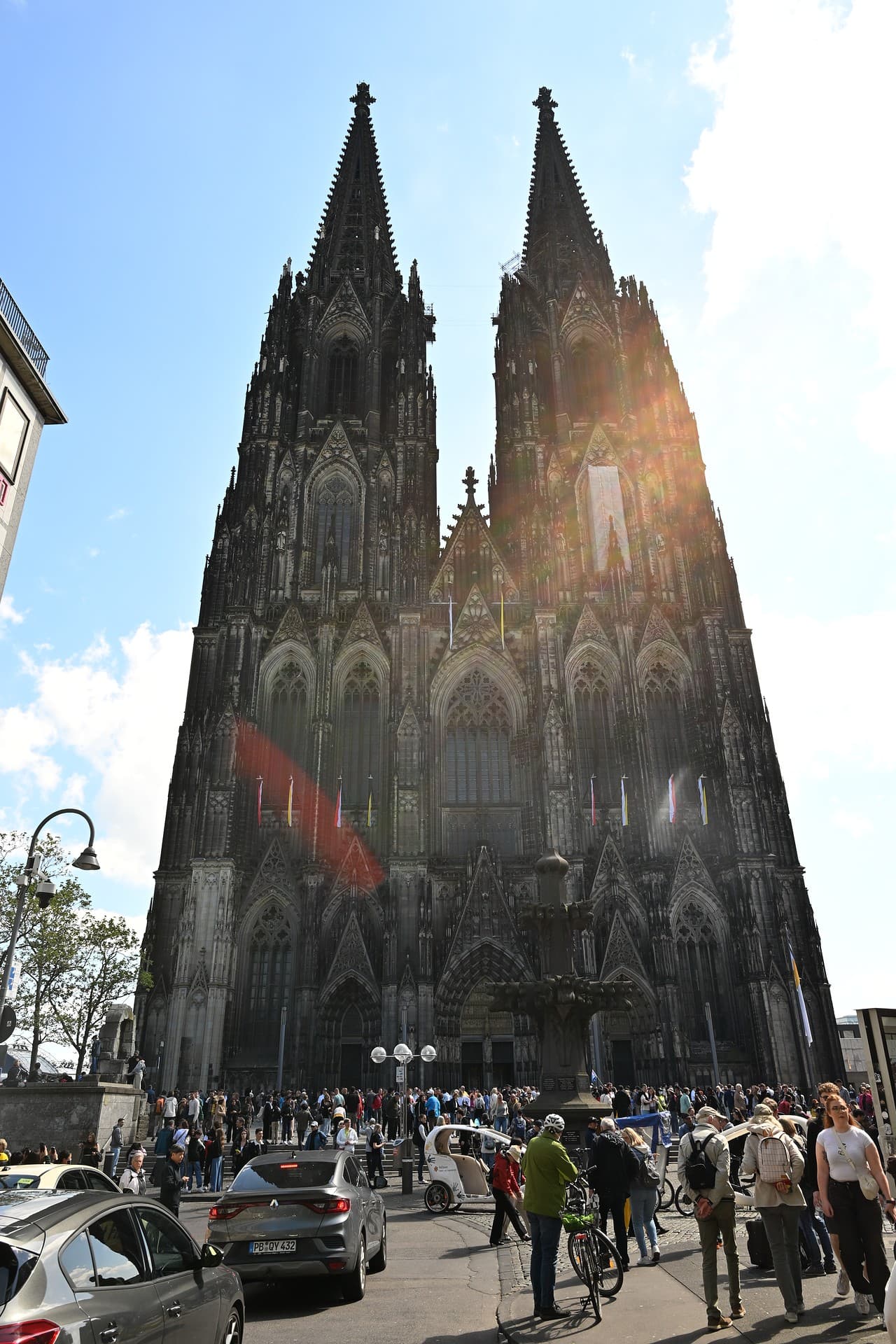 还有一个机位是走过附近的一个大铁桥,然后回头照大桥和科隆大教堂(还有模特)的合影: