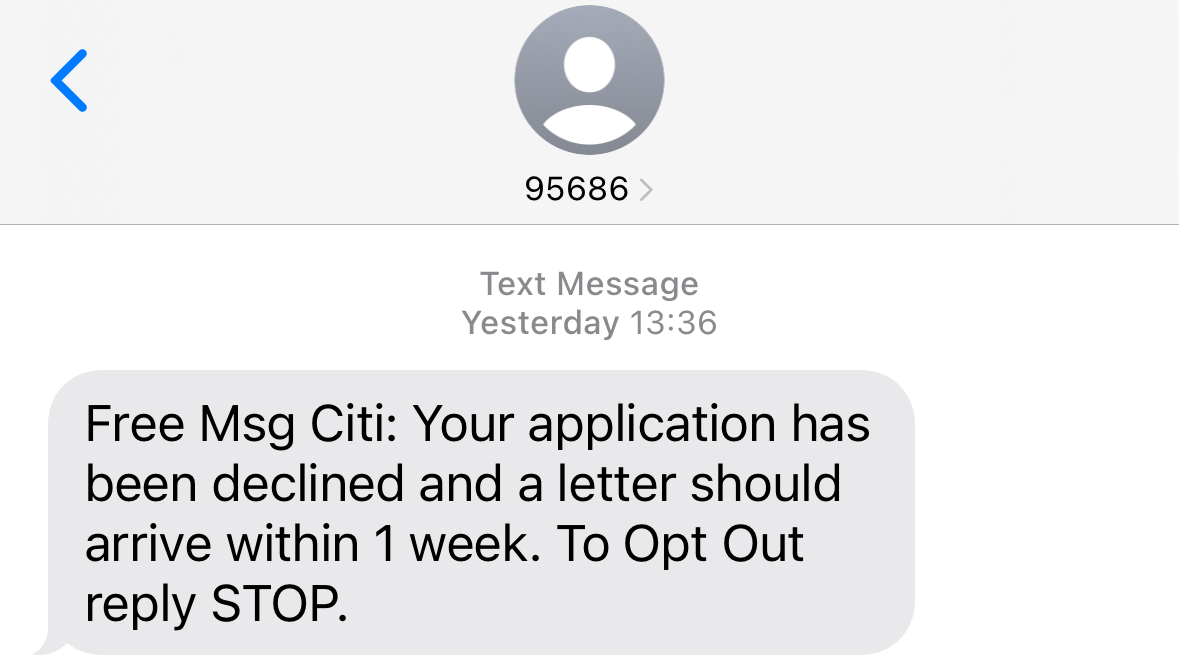 秒拒。citi除了n年前下过一张AA,近五年就没给我批过任何一张卡。。。都是使用率太低(卡比较多,常年3%左右),怎么破。。。