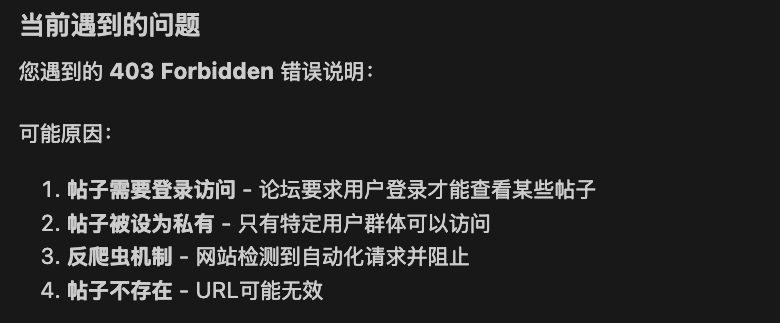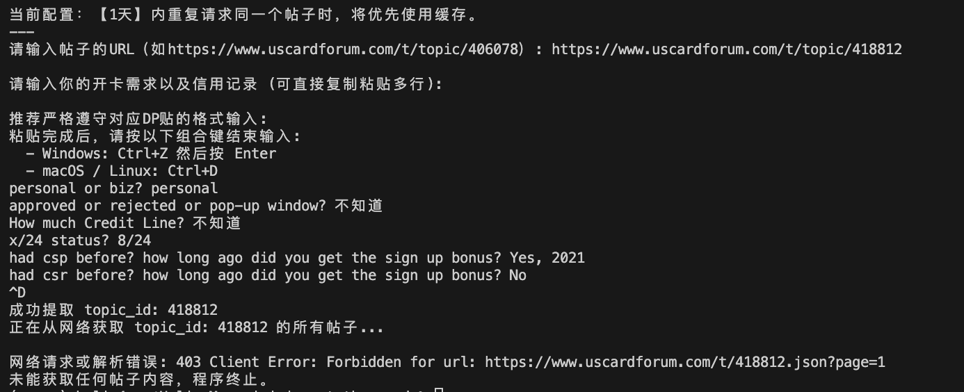https://www.uscardforum.com/t/topic/418812.json?page=1 这个链接,你浏览器隐私模式打得开吗,如果正常模式(非隐私模式)打得开,隐私模式打不开,我怀疑是你的网络问题,被泥潭认定为脚本了,主楼是游客模式爬的帖子内容,可能ip质量不行被认定为脚本的话,不登录不行