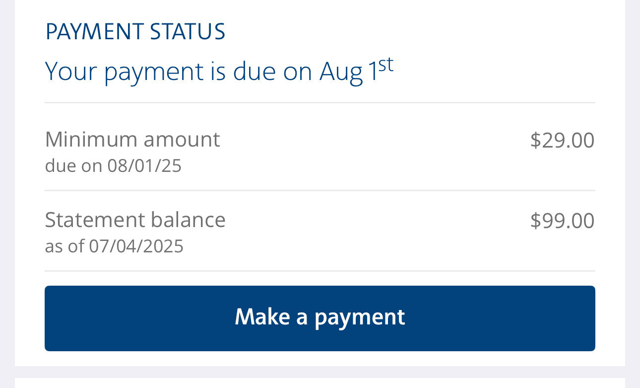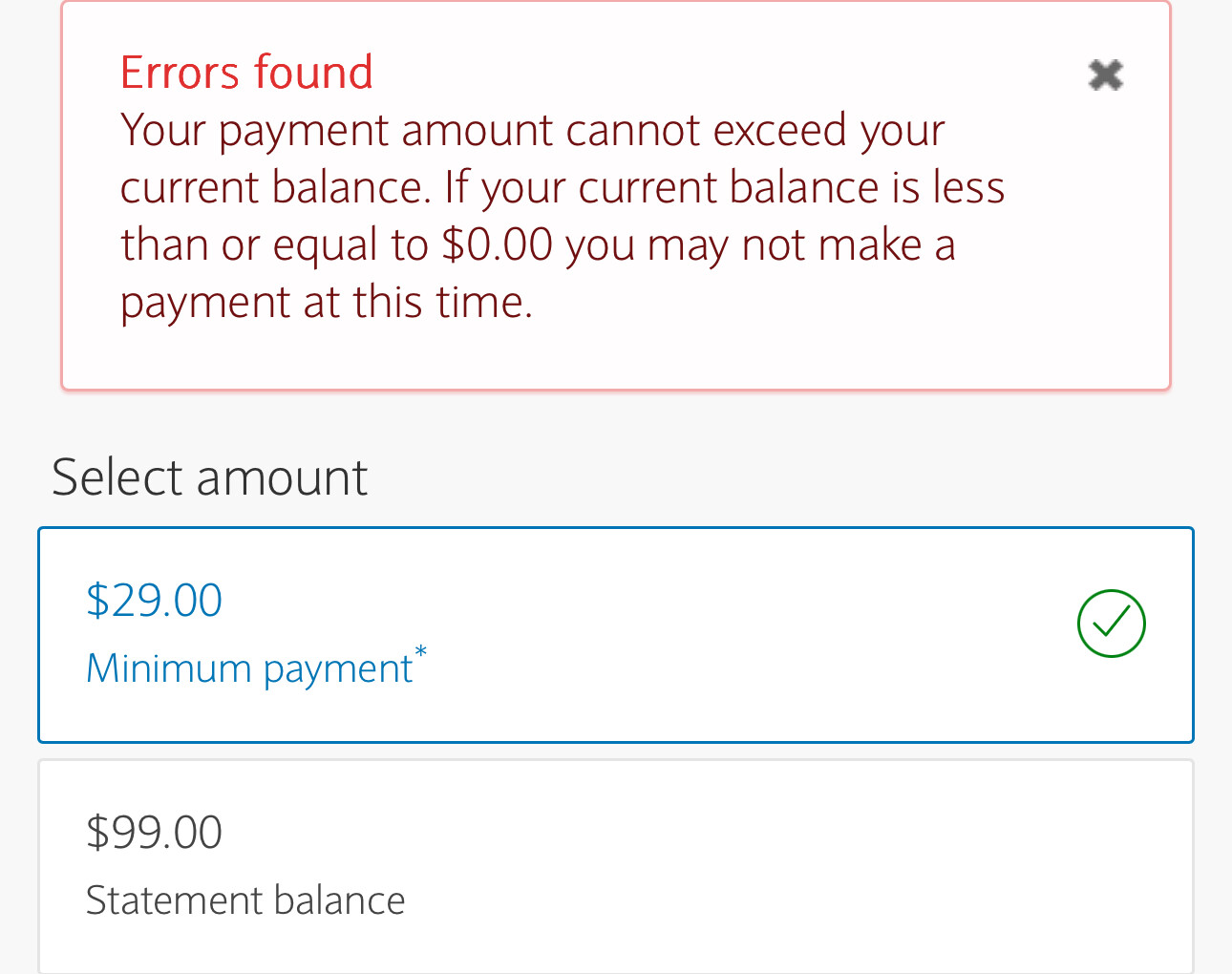 那就无视吧毕竟现在没balance了,不过理论上确实应该是要付当前balance或min payment中更小的那个