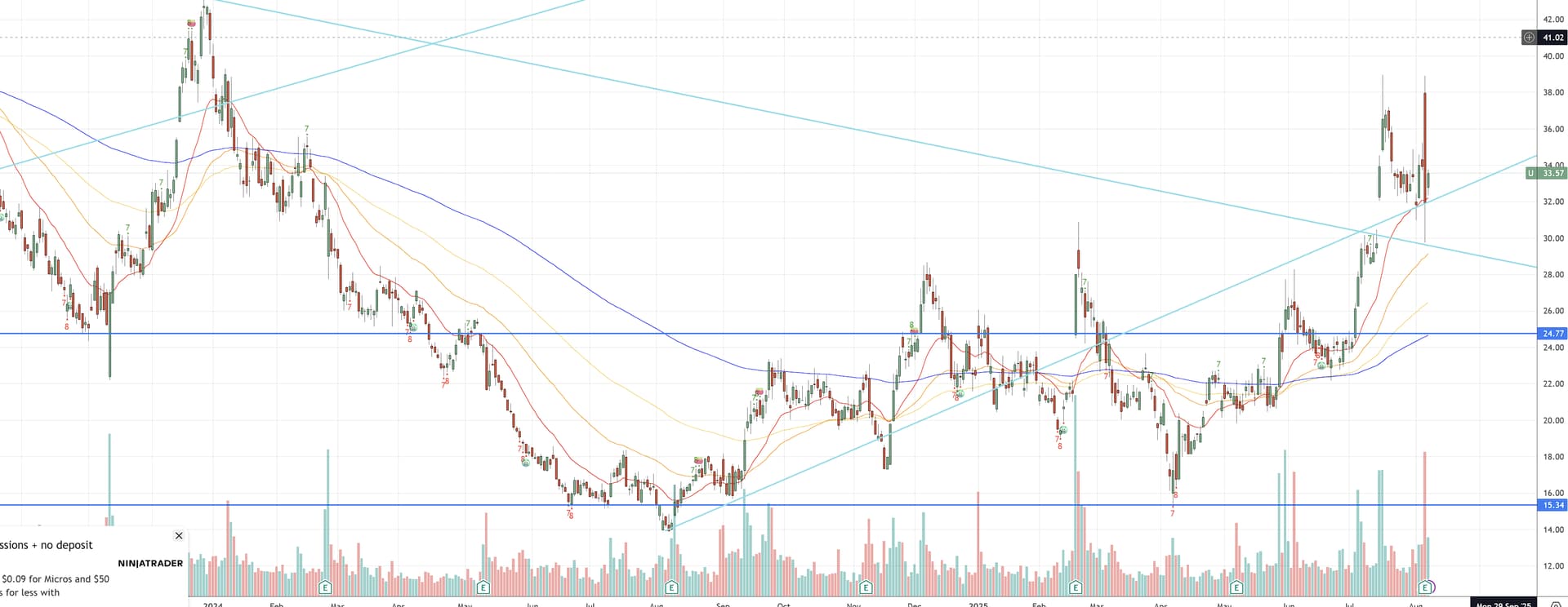 5个交易日之内,应该又会出机会,错过上次 $33.xx 的这次可以上车,之后不一定会有好机会了。