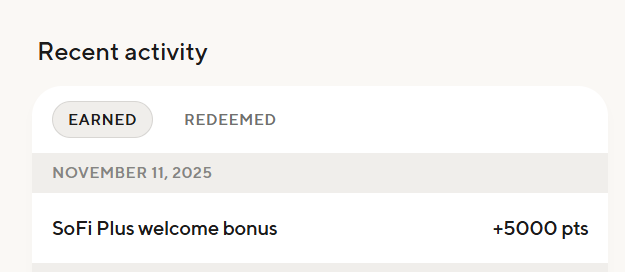 收到50 sofi reward points了,是从开Plus之后第一次DD开始算的,完结撒花