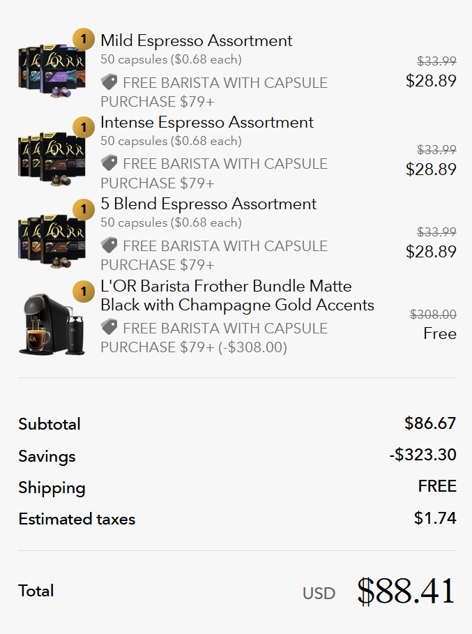 All Coffee & Espresso | L'OR Coffee 选>$79的就好 最合适的有几种100capsules的$80.74
