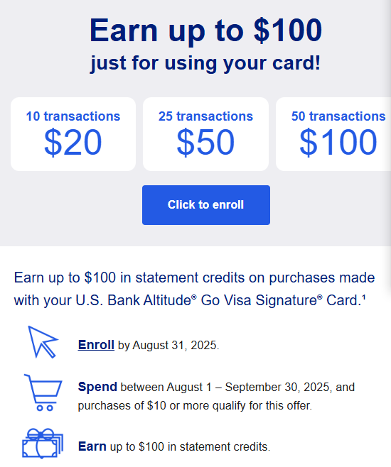 收到邮件us bank现在用卡返现金,返现比例可高达20%,最高100刀