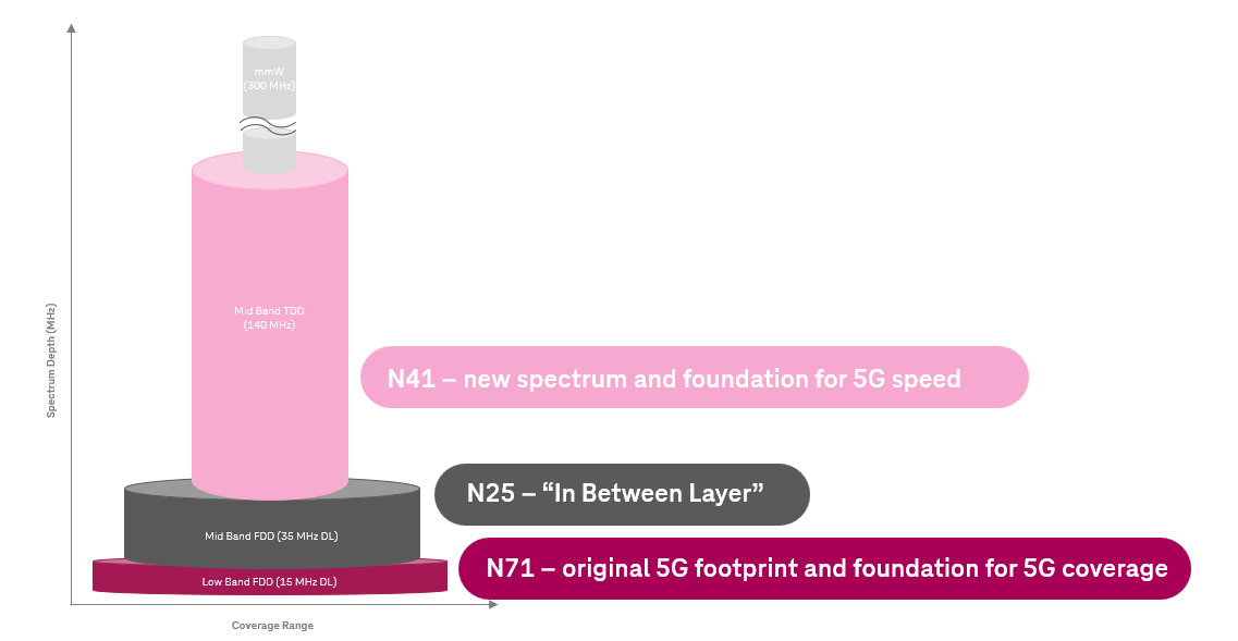 不是很重要,因为Sprint建网的时候4G5G都是完全以41频段为核心,用41频段覆盖全国的。Tmobile接手之后也是以41作为5G网络主力的,低频的71覆盖虽然更大,但毕竟带宽小几乎体现不出5G的优势,所以Tmobile还是有在努力加强41的覆盖。就我的体验来看,只用N41的5G网络覆盖已经完全可以了