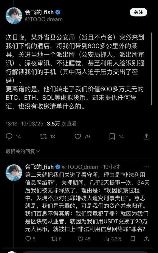 今天主人公来update了,说是江西警方,解锁手机之后转走了价值610万的币,这一轮发推施压之后让他签“和解”退回300万解除边控。
