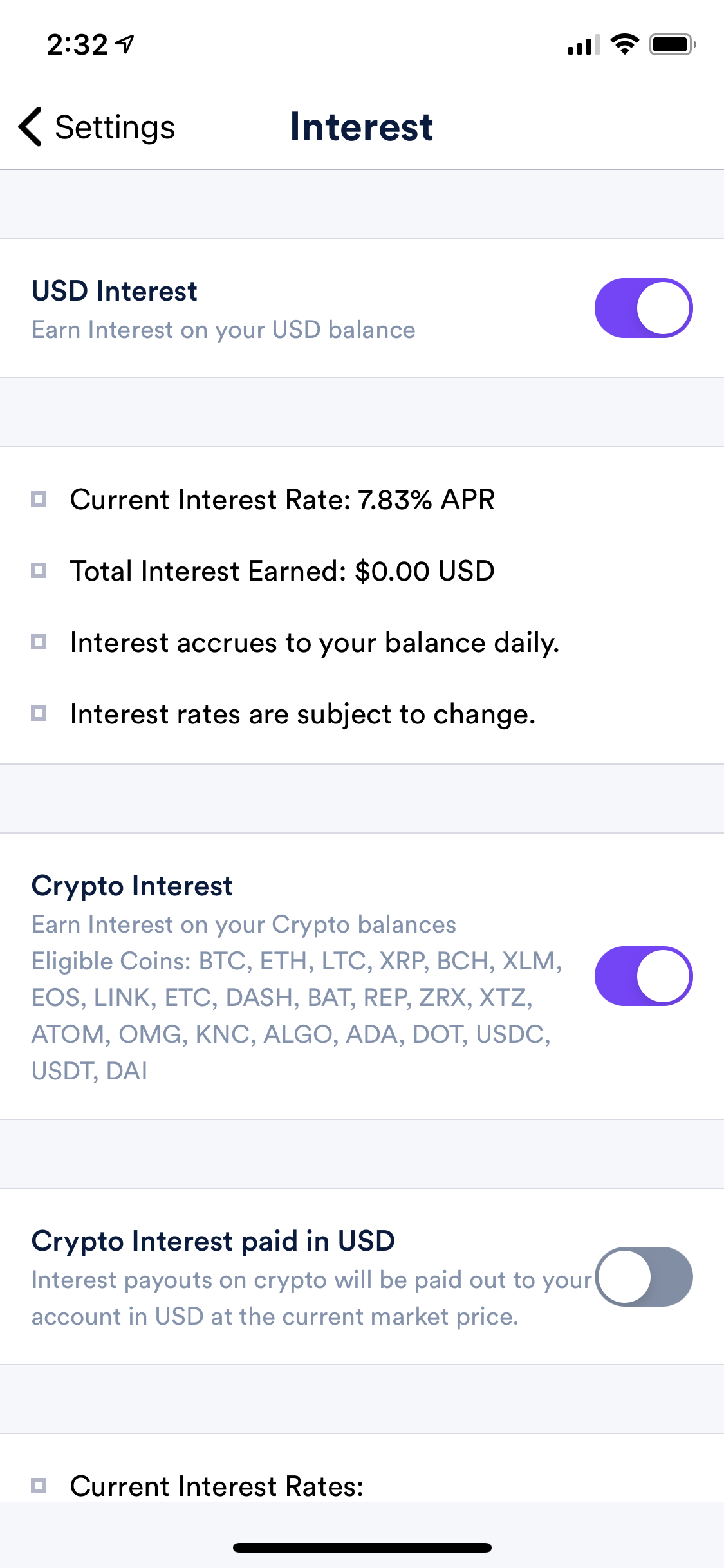 就是这个USD Interest Account有7.83%的APY,貌似和crypto不一样诶。