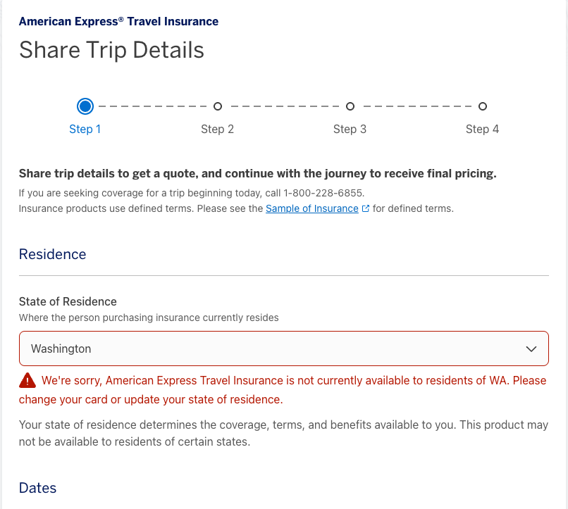 在我申报的时候,我发现 [link](Share Trip Details – Travel Insurance | American Express US)
