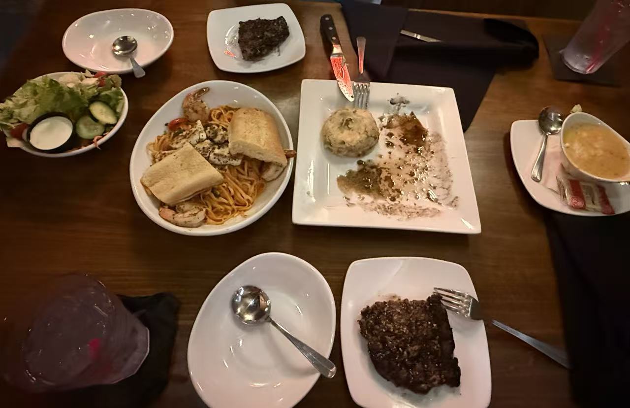 ,我住在West Glacier,每天都要开1h到西门,再开1h到Logan Pass Visitor Center。感觉West Glacier是美食荒漠,很多餐厅早早关门了,导致hiking完出来很晚很难找到饭吃,只推荐一家餐厅The Montana Club Restaurant,开得比较晚味道也还行(晚上光线不好拍的很烂