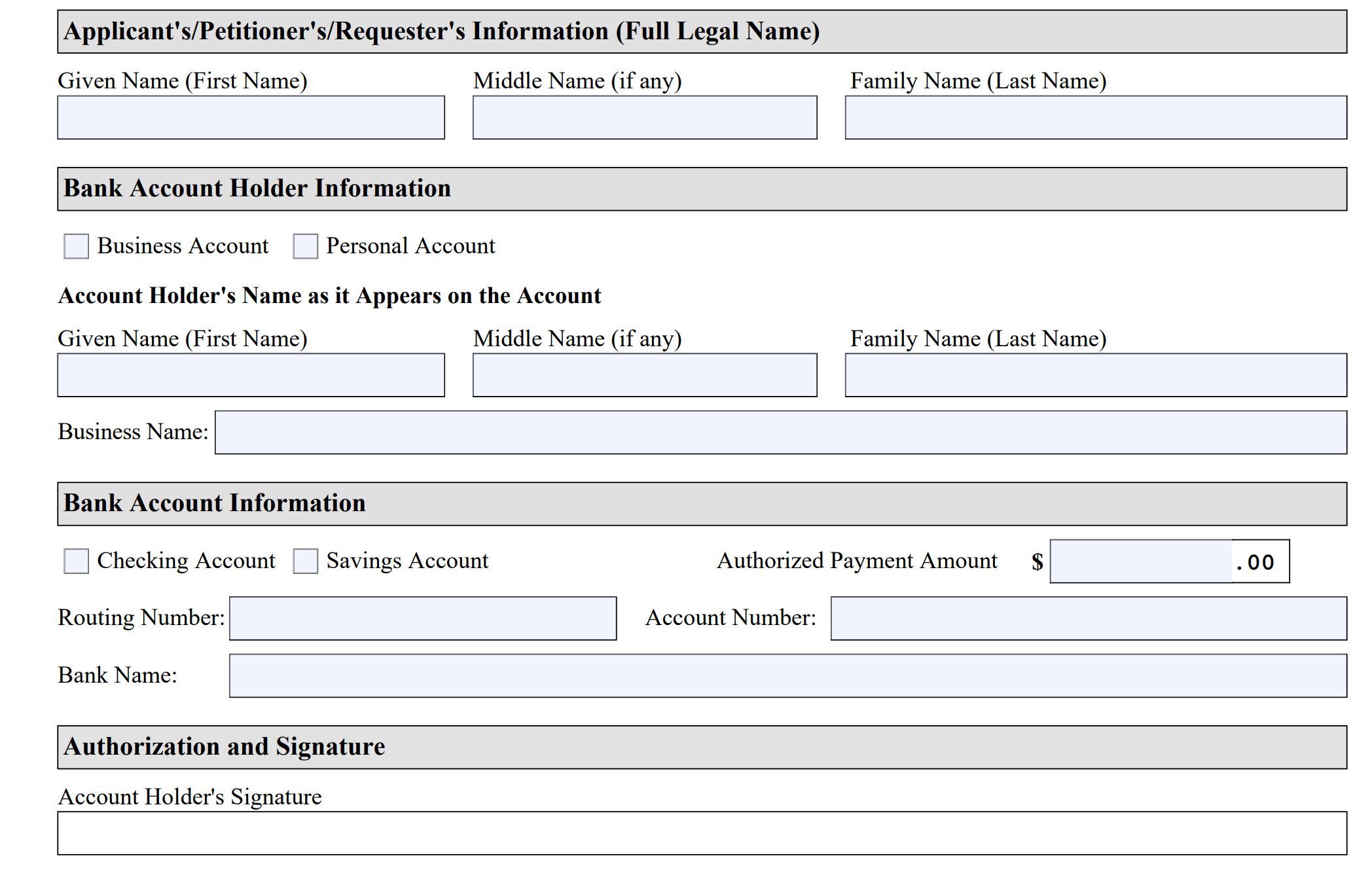 New form allows payment of filing fees, services via secure direct debit payments
