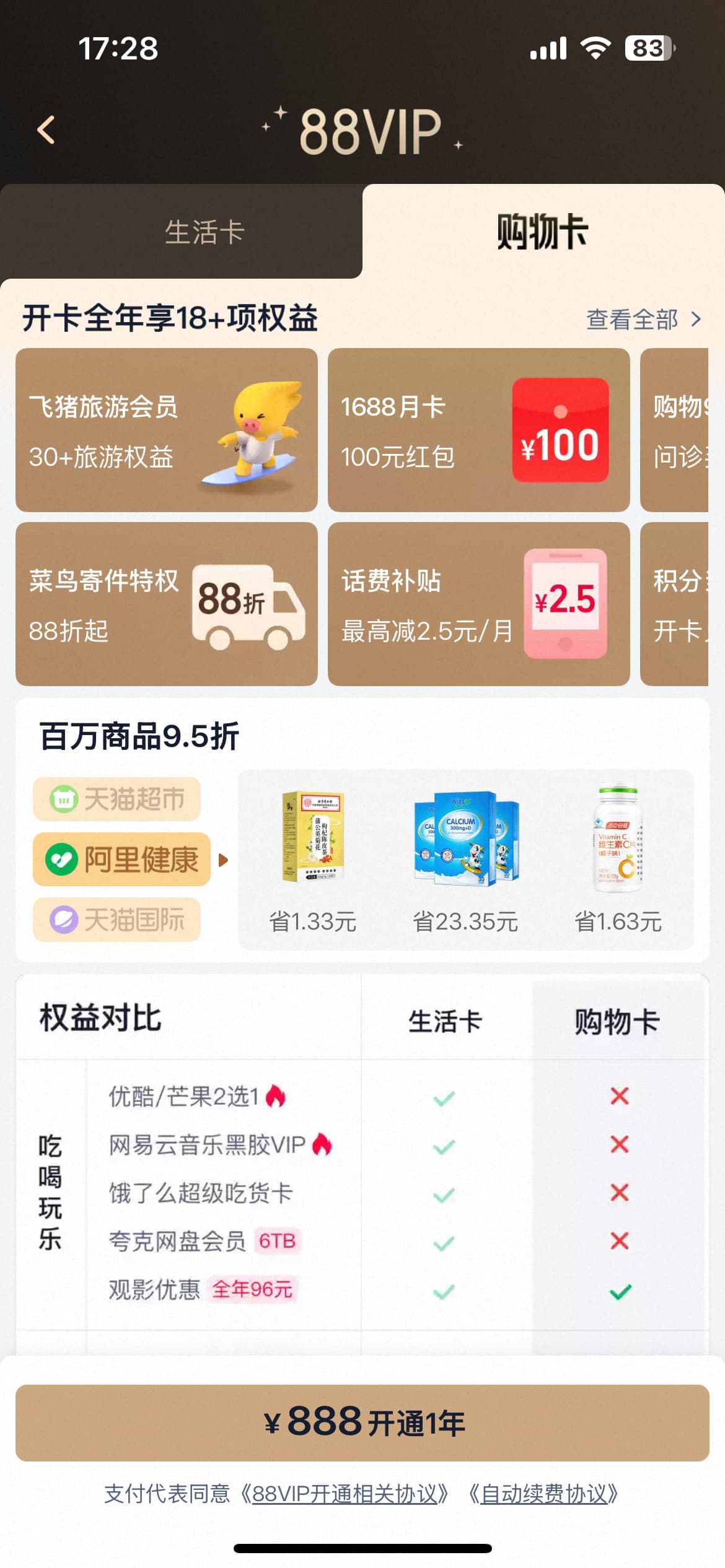 是不是获得白挑的总成本是88块的88VIP加上188的飞猪F4总共