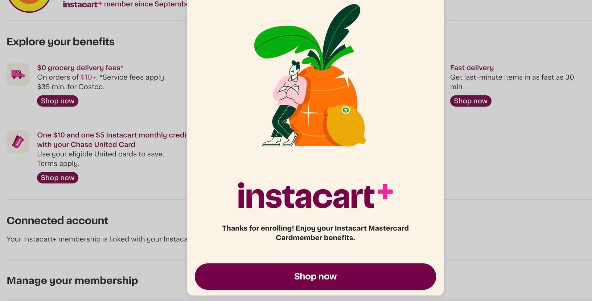 - Remain an active Instacart+ member enrolled with an eligible Mastercard.