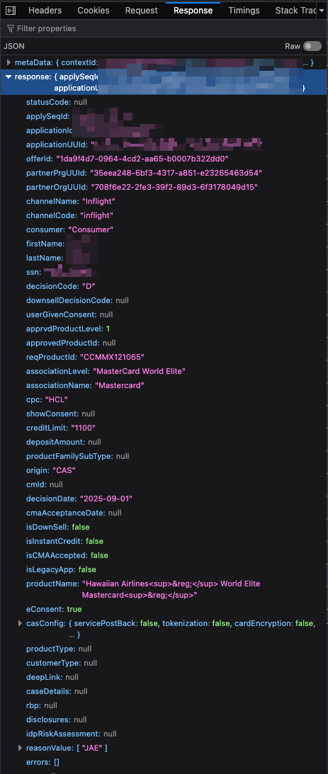 有趣的事卡被拒了但还是有credit limit。我才有可能是这credit limit太低就会被拒,希望大家可以去查一查自己拒卡的response来看一看还有什么reason value和credit limit。