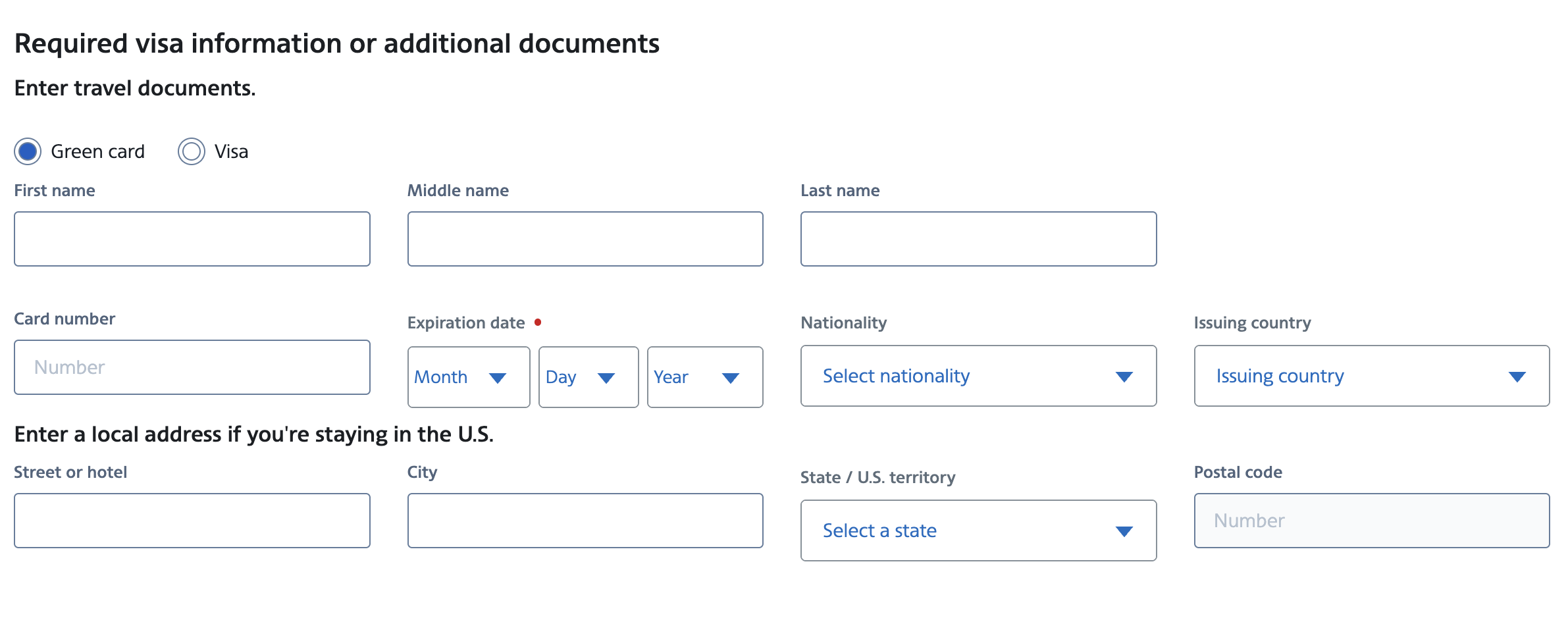 印象中AA这里美国出发也是让你填美国的绿卡或签证 ![]()