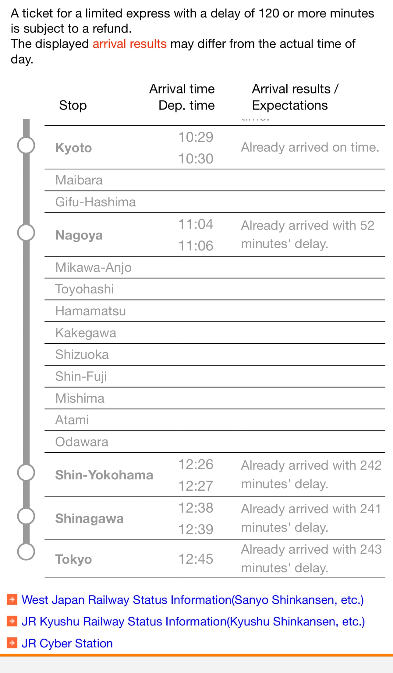 稍微小小的安慰一下楼主,你可以拿着票去窗口退钱了。新干线延误超过120分钟会退还你特急券的价钱,大概回血一半左右吧