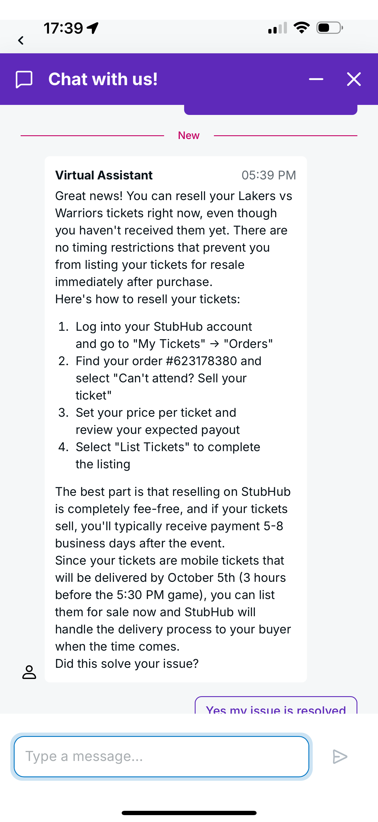 因为订的圣诞节比赛票,很抢手,很耽心拿不到票而扫兴,所以打了几次电话,stubhub 就说有票(但是就不给我)然后最后整岀来几张其它座位的票,我觉得我那票就是这么倒来倒去倒出错了才这结果。当时不知道前台xx ![]()