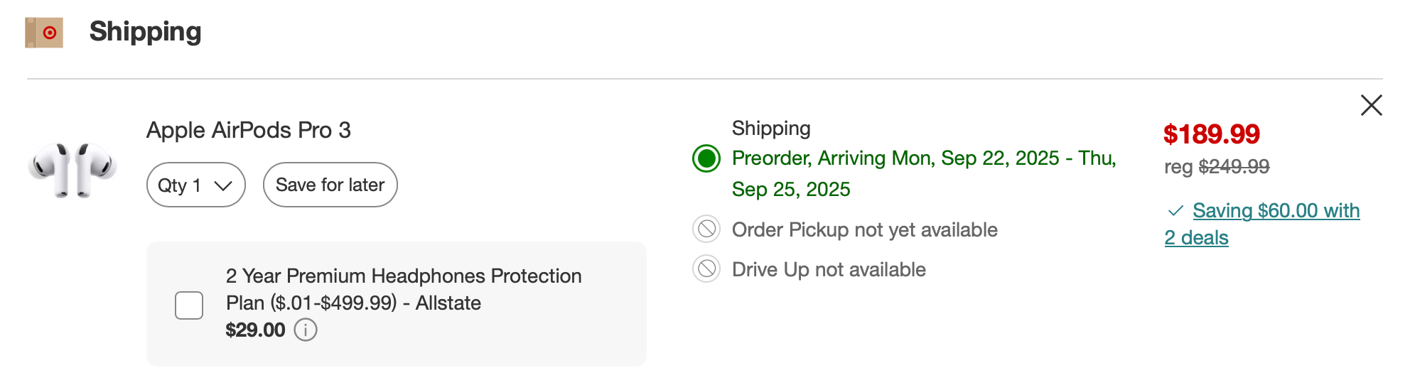 想问下这个价格是target 吗? 我的target 没这个好价 想把apple 官网上买的退了