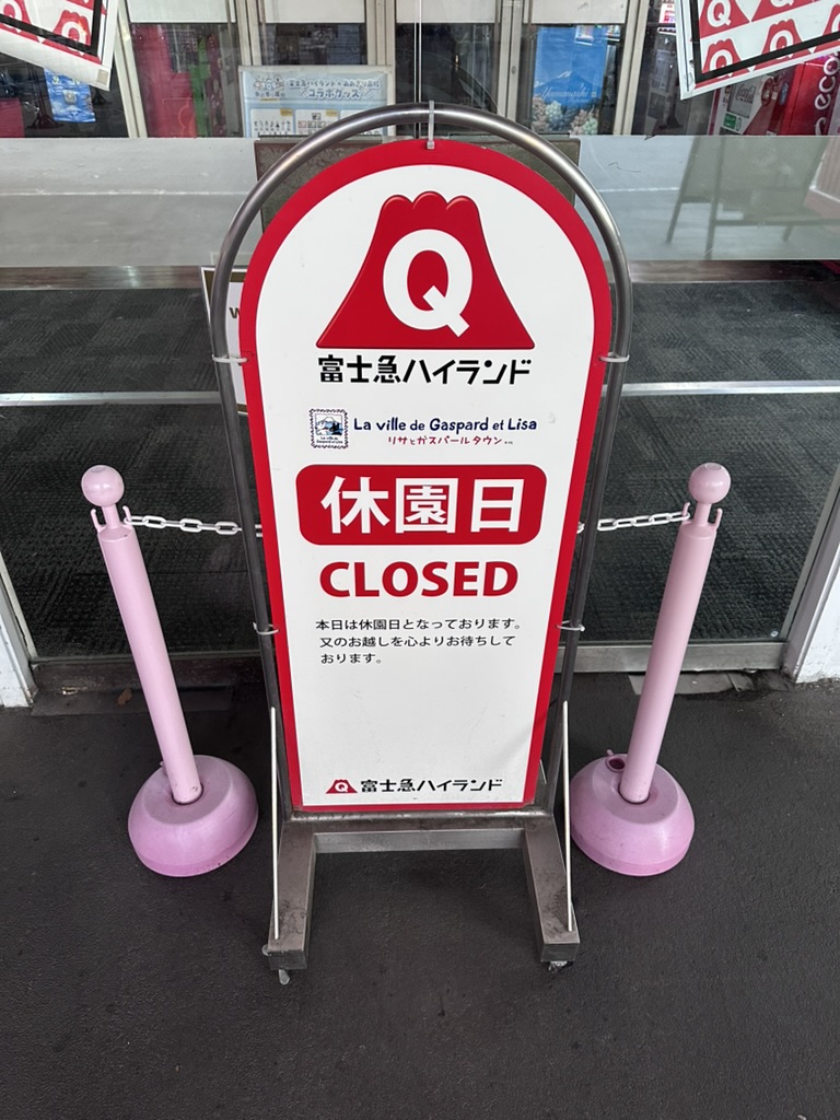 之后坐了酒店shuttle去了富士急乐园,结果关门,日本的google map开业时间真的是不准,各位去景点前建议double check一下官网。这个富士急乐园以前有很多youtuber/b站博主去过,最大的卖点是最吓人的鬼屋和最刺激的过山车(由于过于极端,导致游客受伤最后被改造翻修),还有火影忍者主题乐园,应该有不少人来这拍中二忍者跑步照。
