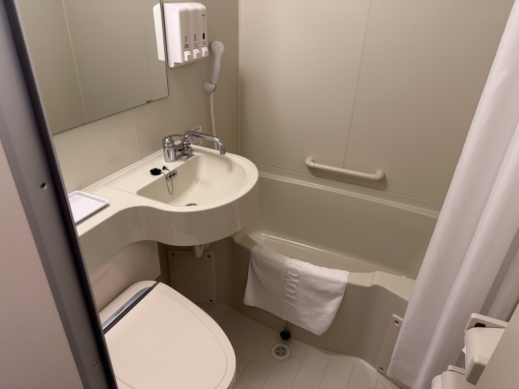 在泥潭东京指定招待所comfort hotel tokyo kanda的前台存了行李出来,走到Kanda站,坐JR到Otsuki站,然后坐酒店的免费shuttle巴士到达东横INN酒店Toyoko Inn Fuji Kawaguchiko Ohashi
