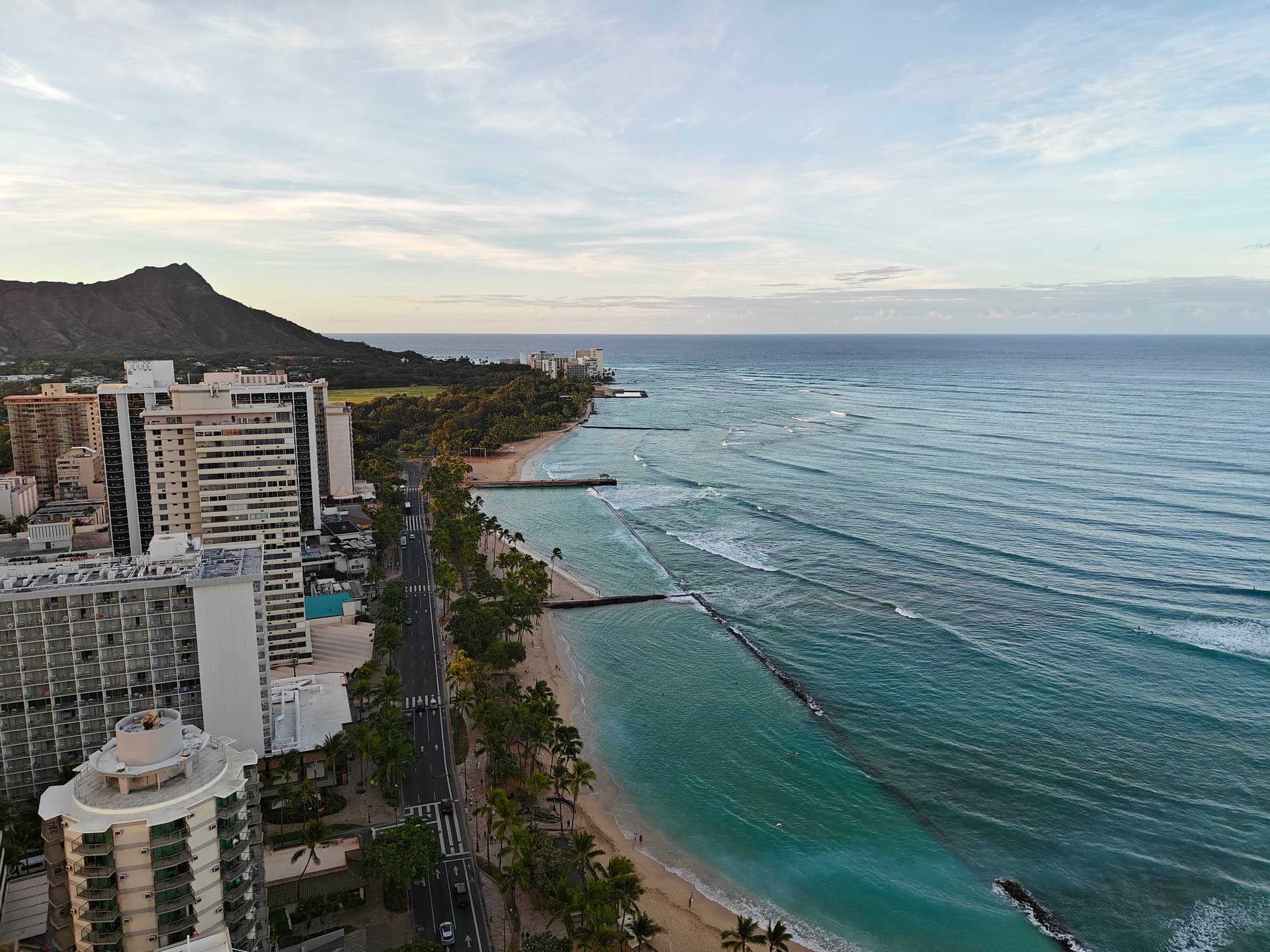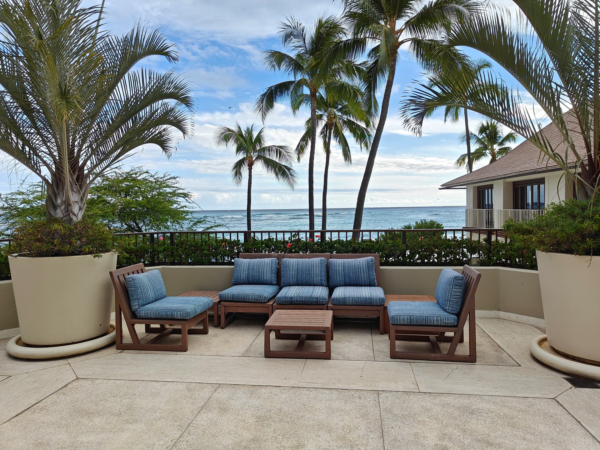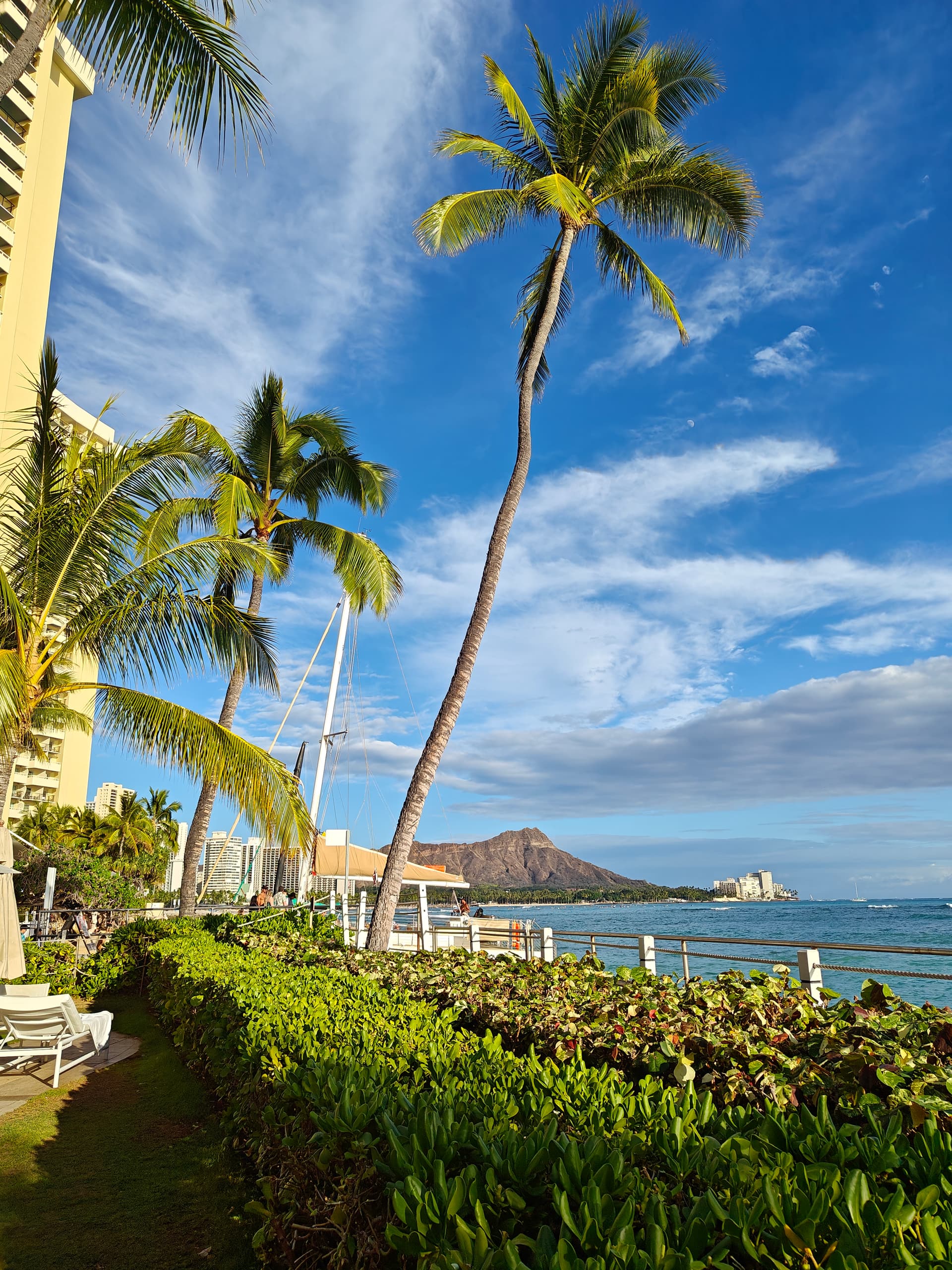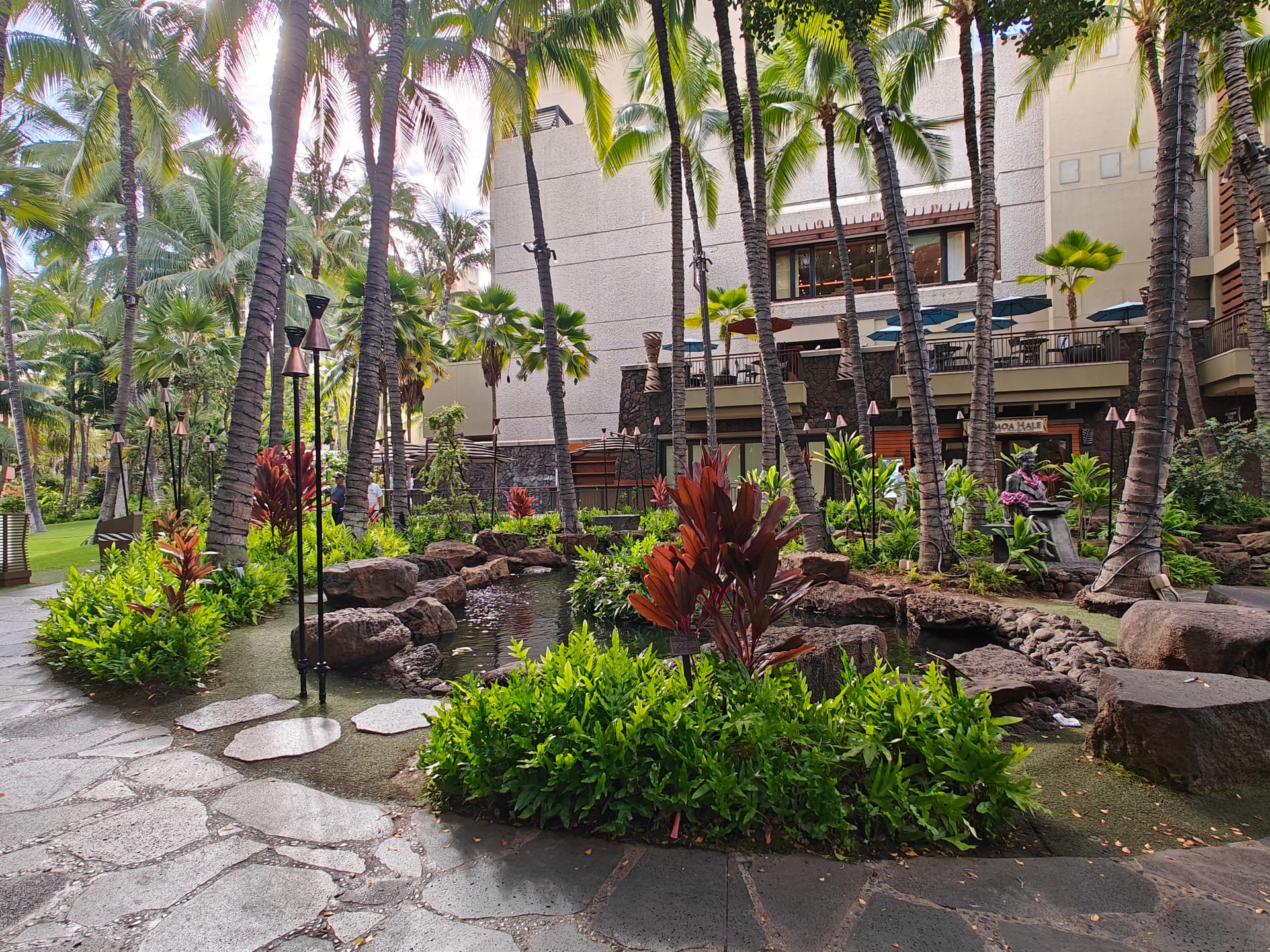 在一众奢华酒店缺席的热闹Waikiki,几个连锁集团集体都在以上千间房间的大卖场姿态摆烂,而四季这个水平的酒店都深谙segregation之道,不是开在私人岛上就是在Oahu的尽头 (Ritz Turtle Bay, Four Seasons Ko Olina, etc)。所以日本经济景气留下来的遗产,三菱不动产持有的Halekulani应该是Waikiki唯一勉强合格豪华酒店的选择了。酒店入口深藏在门庭若市的Waikiki中心,如果不是特地前往应该很难注意到这个外观毫无特点的物业。踏进酒店大门,看到的服务员比游客多,才能感受到这里确实是一个豪华酒店。