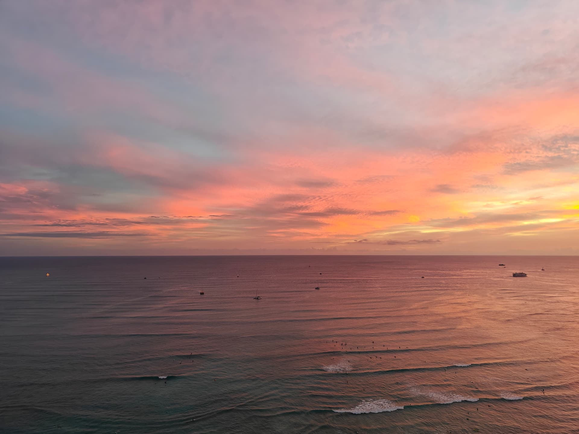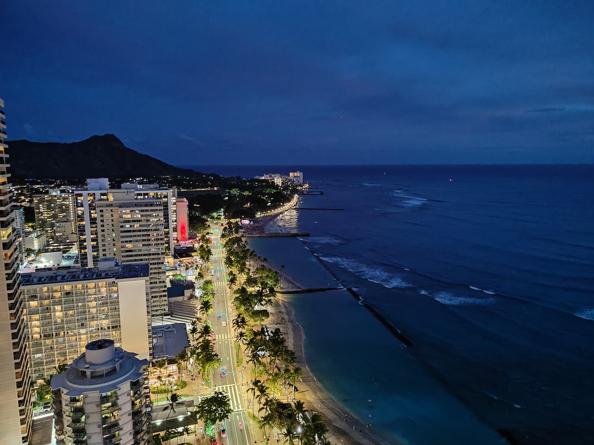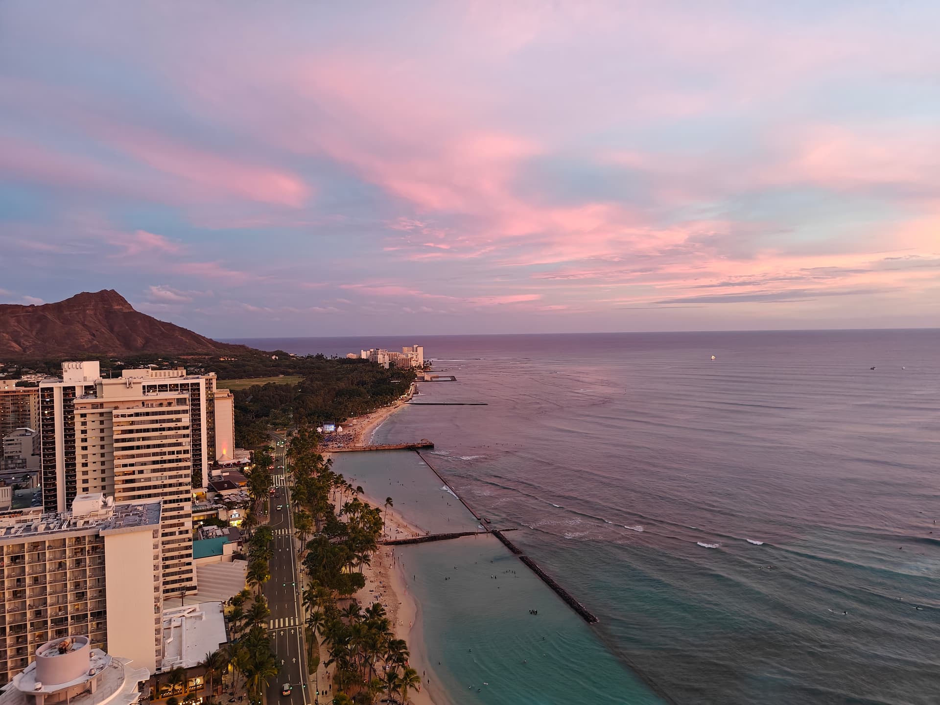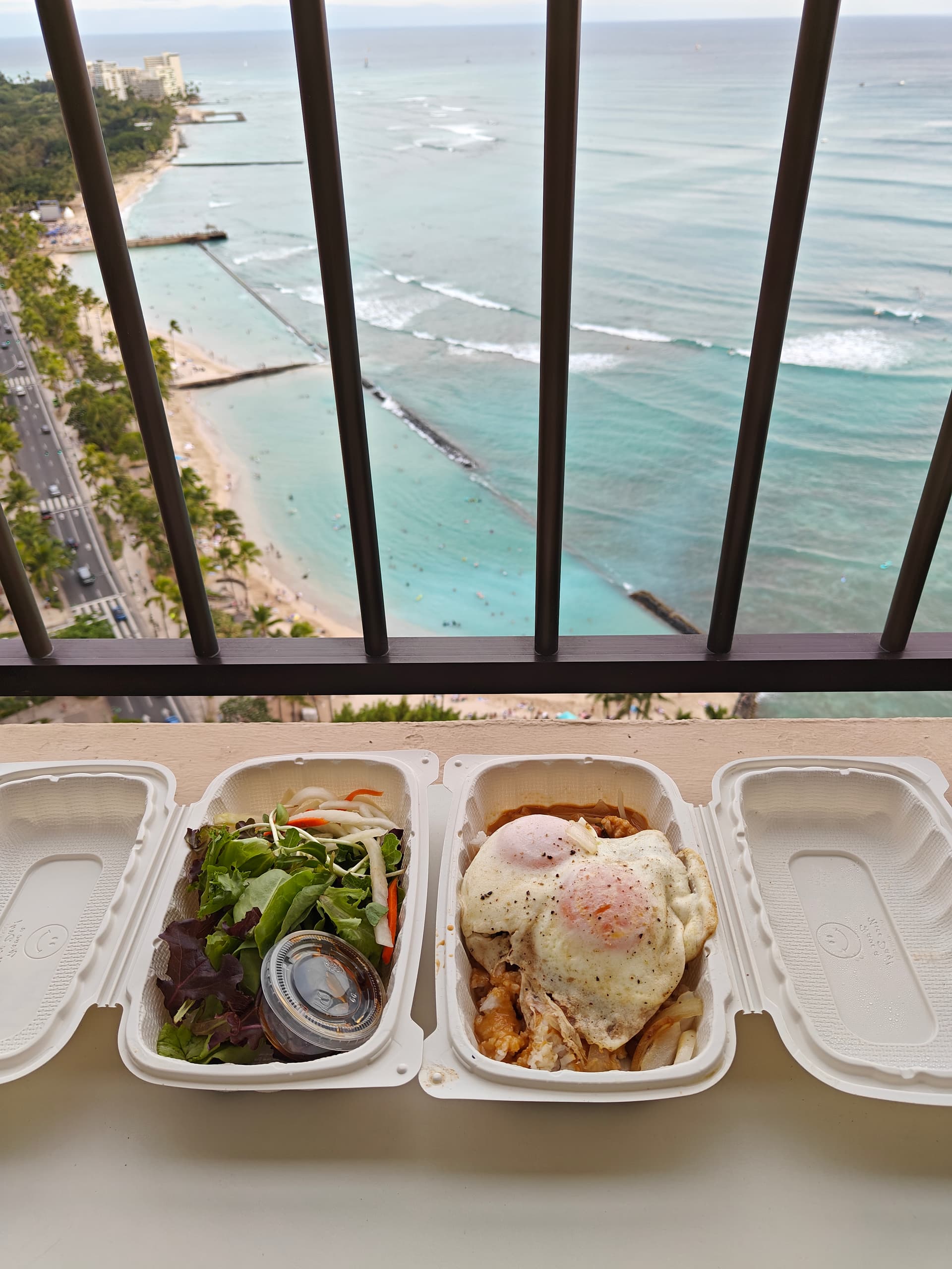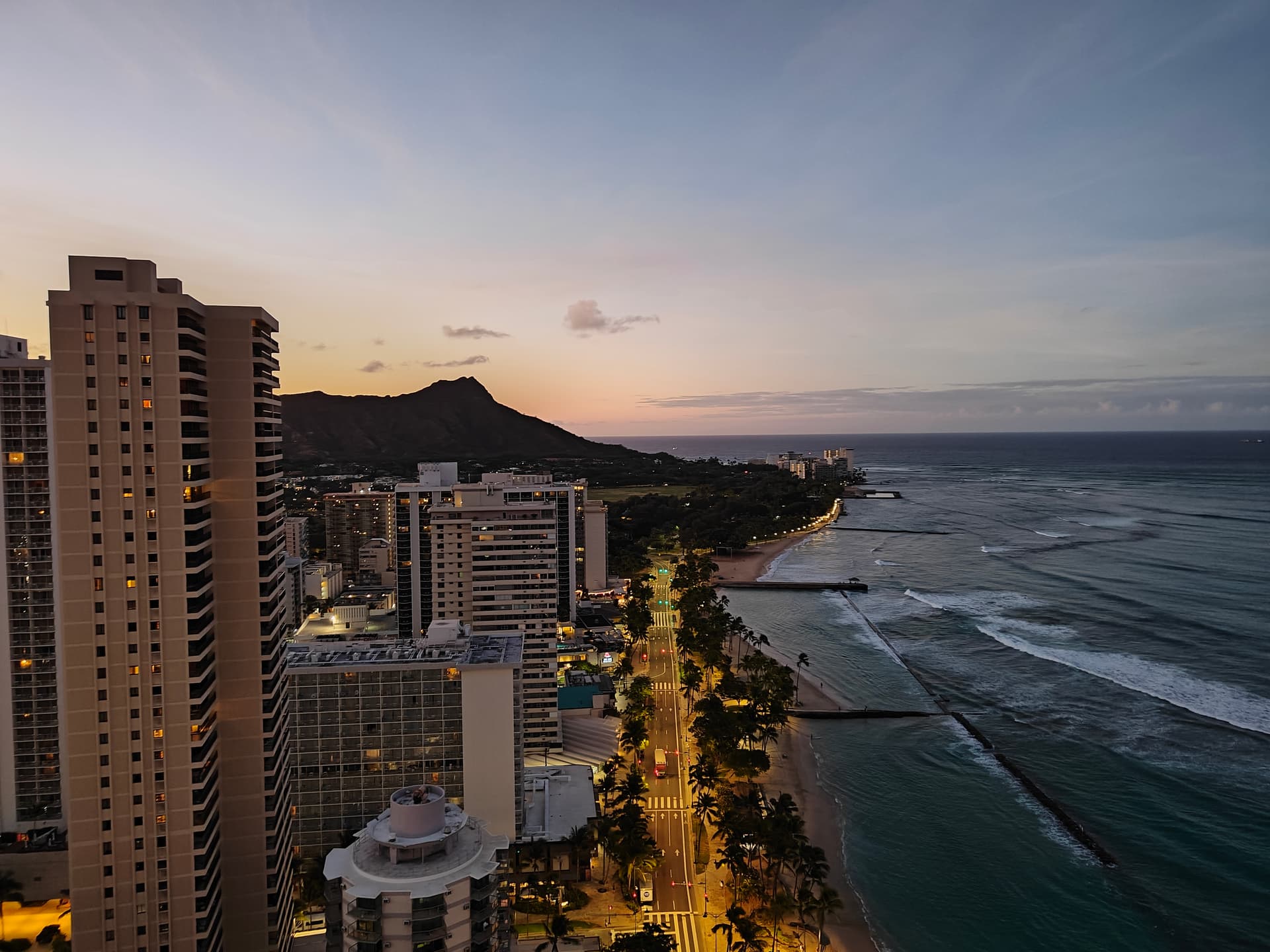 在一众奢华酒店缺席的热闹Waikiki,几个连锁集团集体都在以上千间房间的大卖场姿态摆烂,而四季这个水平的酒店都深谙segregation之道,不是开在私人岛上就是在Oahu的尽头 (Ritz Turtle Bay, Four Seasons Ko Olina, etc)。所以日本经济景气留下来的遗产,三菱不动产持有的Halekulani应该是Waikiki唯一勉强合格豪华酒店的选择了。酒店入口深藏在门庭若市的Waikiki中心,如果不是特地前往应该很难注意到这个外观毫无特点的物业。踏进酒店大门,看到的服务员比游客多,才能感受到这里确实是一个豪华酒店。
