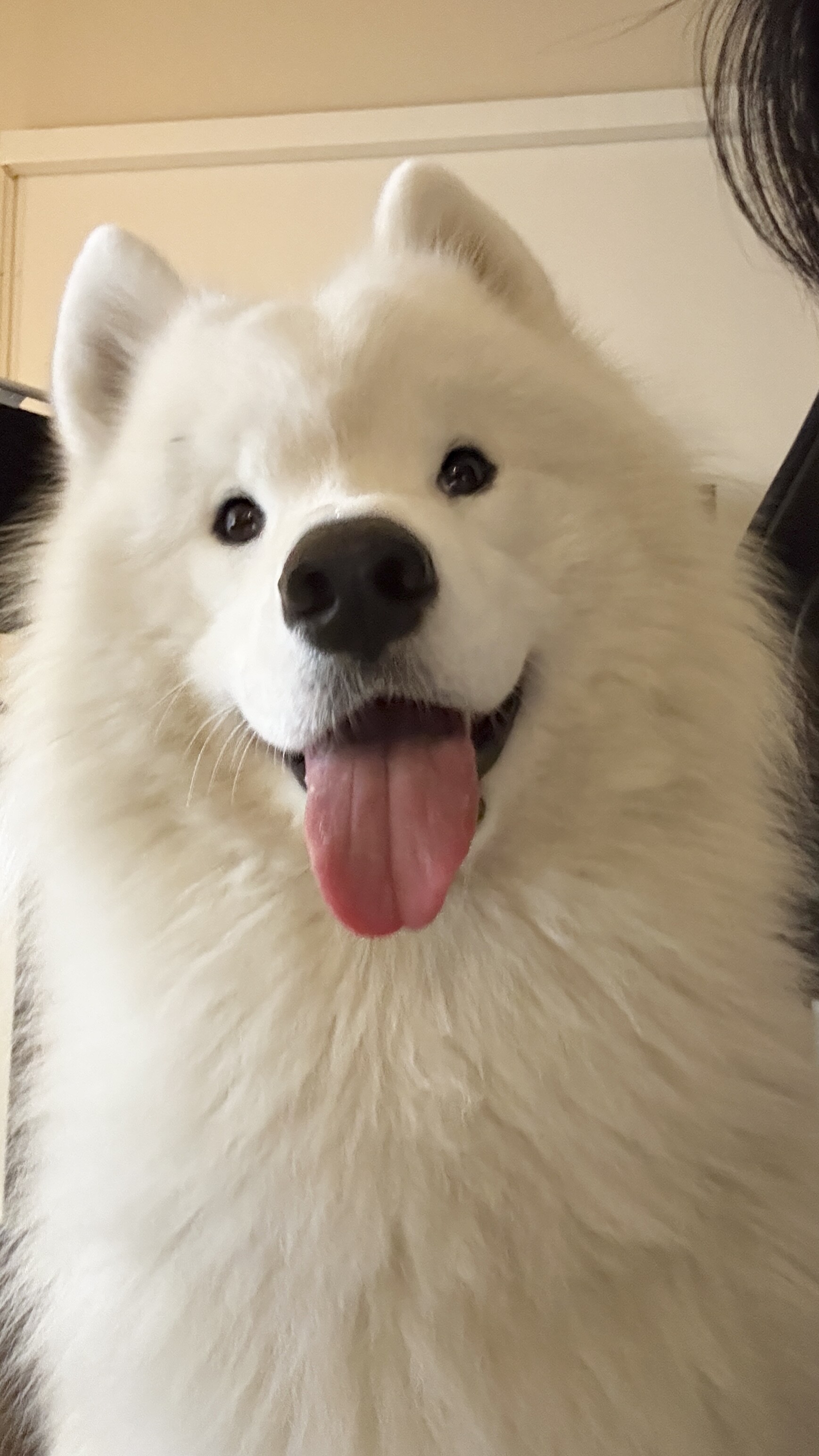 先是一只大白狗,比白雪公主还要白,真的是那种snow white,不知道是什么品种,超大,有点像萨摩耶剪了短发