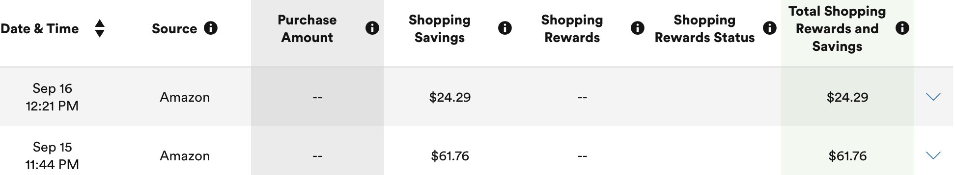 仔细看c1给你玩的小把戏,shopping savings和shopping rewards是不一样的,只有rewards是cashback,saving就是下单使用的coupon让你省了多钱