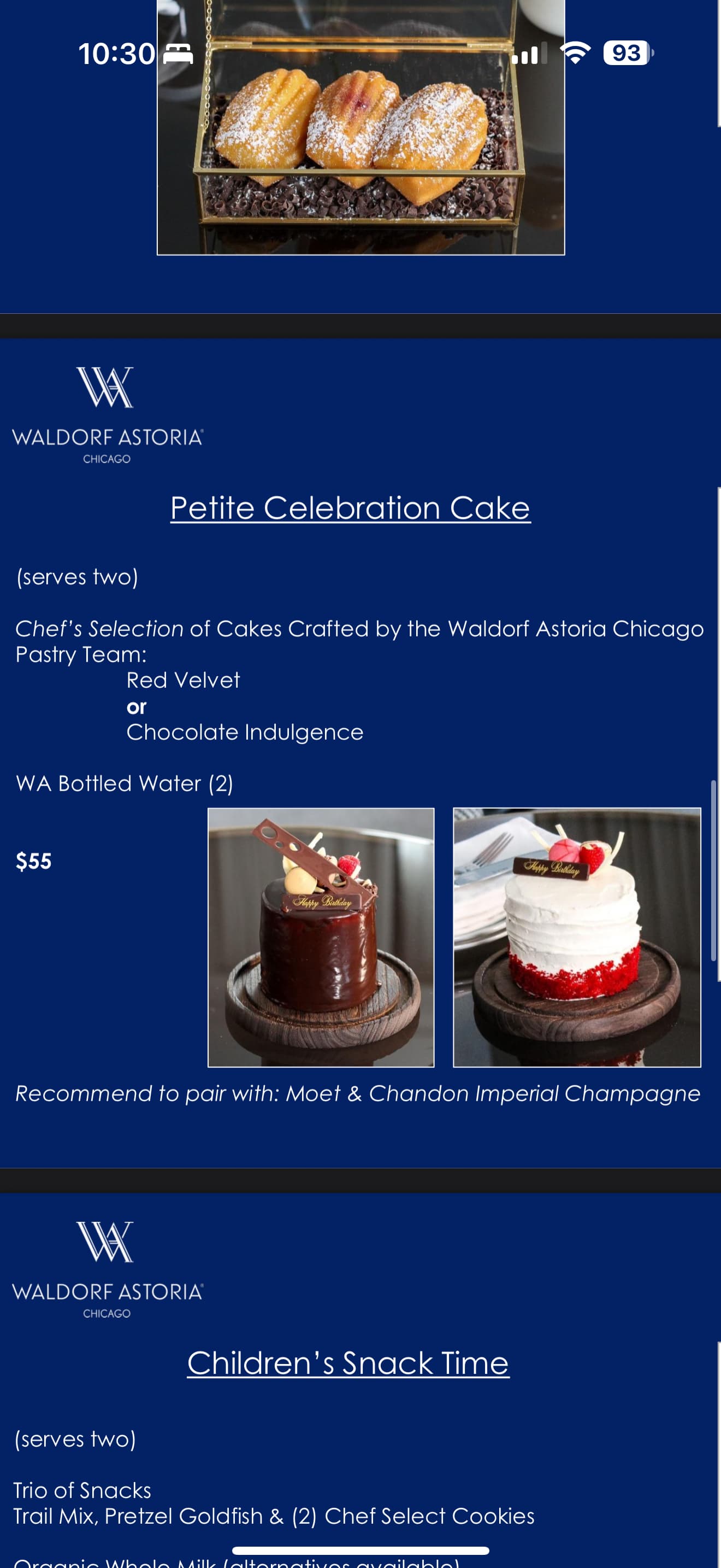 还是不错了 下周要去芝加哥wa 也是生日 提前告知了 管家 管家很直接了当扔了 menu过来问 需要哪些 完全不是免费的 ![]()