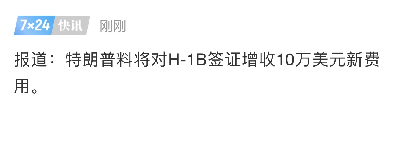 【报道:特朗普将对H-1B签证加收10万美元的新费用】据一位知情白宫官员透露,美国总统特朗普预计最早将于周五签署一项公告,将对H-1B签证计划进行全面改革,要求申请费用为10万美元,以遏制过度使用。特朗普将于周五签署一项声明,要求支付这笔钱,并声称滥用H-1B签证已经取代了美国工人。该公告限制H-1B项目的入境,除非附有付款。特朗普还计划命令劳工部长启动一项规则制定程序,修改H-1B项目的现行工资水平,此举旨在限制利用签证来压低美国工人的工资。(彭博) (来自华尔街见闻)