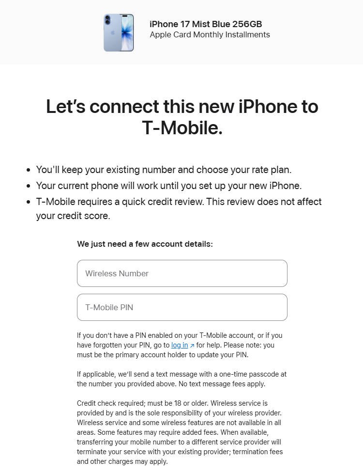 视频里就是 17 呀,得先选 Apple Card,直接选 T- Mobile 应该不行