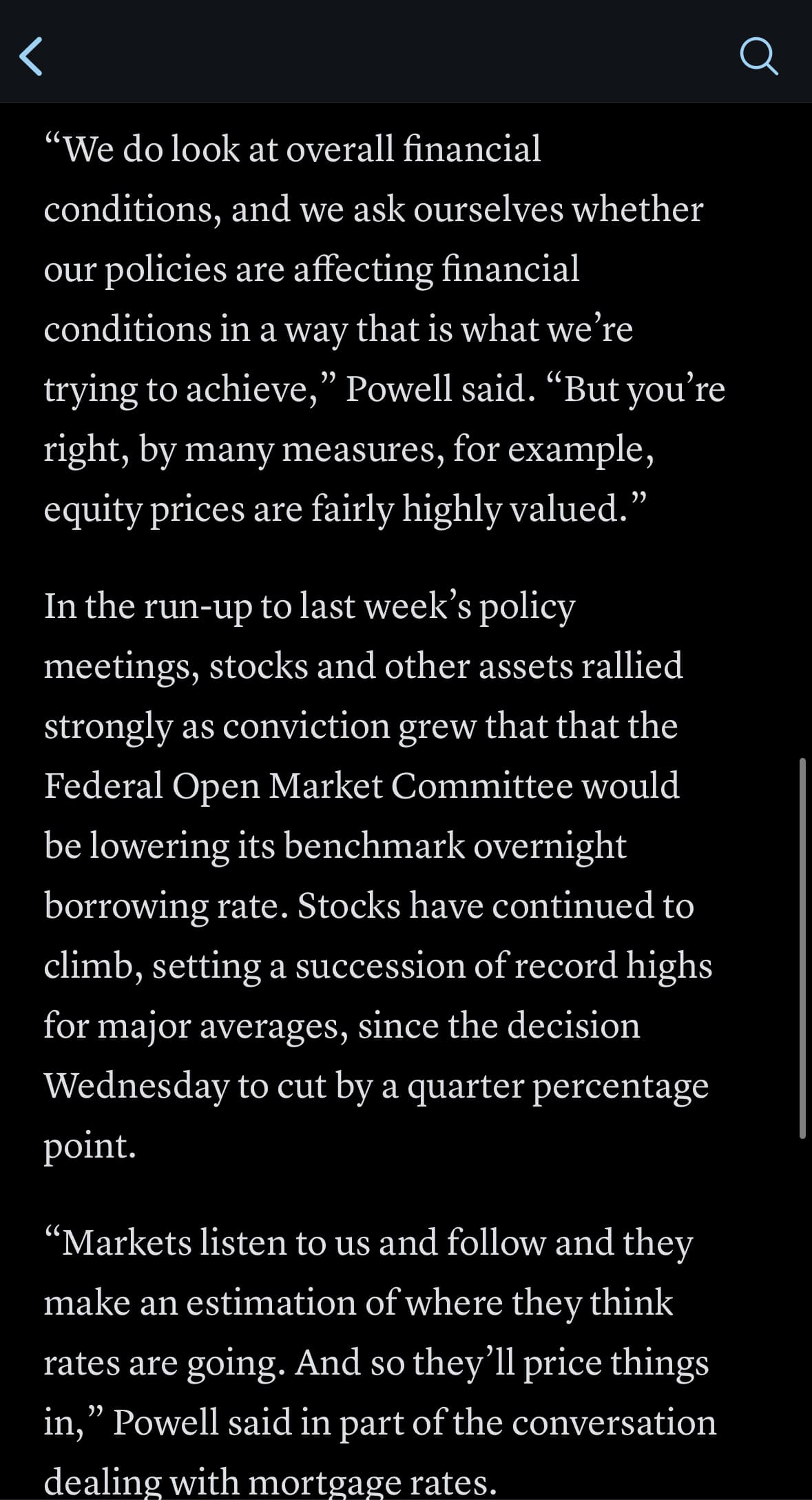 “我们确实会关注整体的金融状况,并会自问,我们的政策是否以我们期望的方式影响了金融环境,” 鲍威尔说。