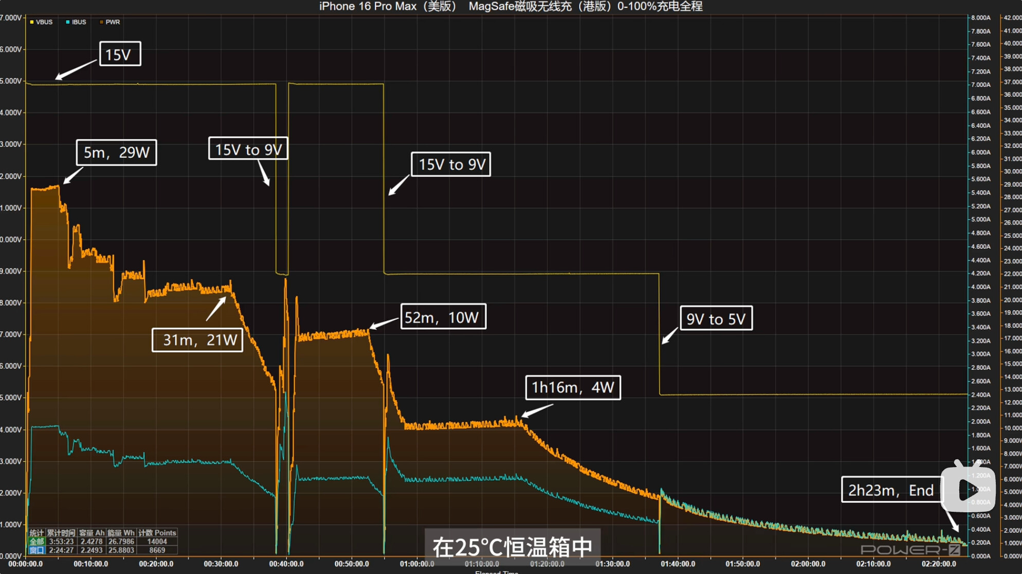 之前苹果官方那个 25w 基本就是招笑 25c 恒温箱里面,5 分钟功率就基本降到 15w 去了,全程来说跟用 15w 几乎毫无区别。