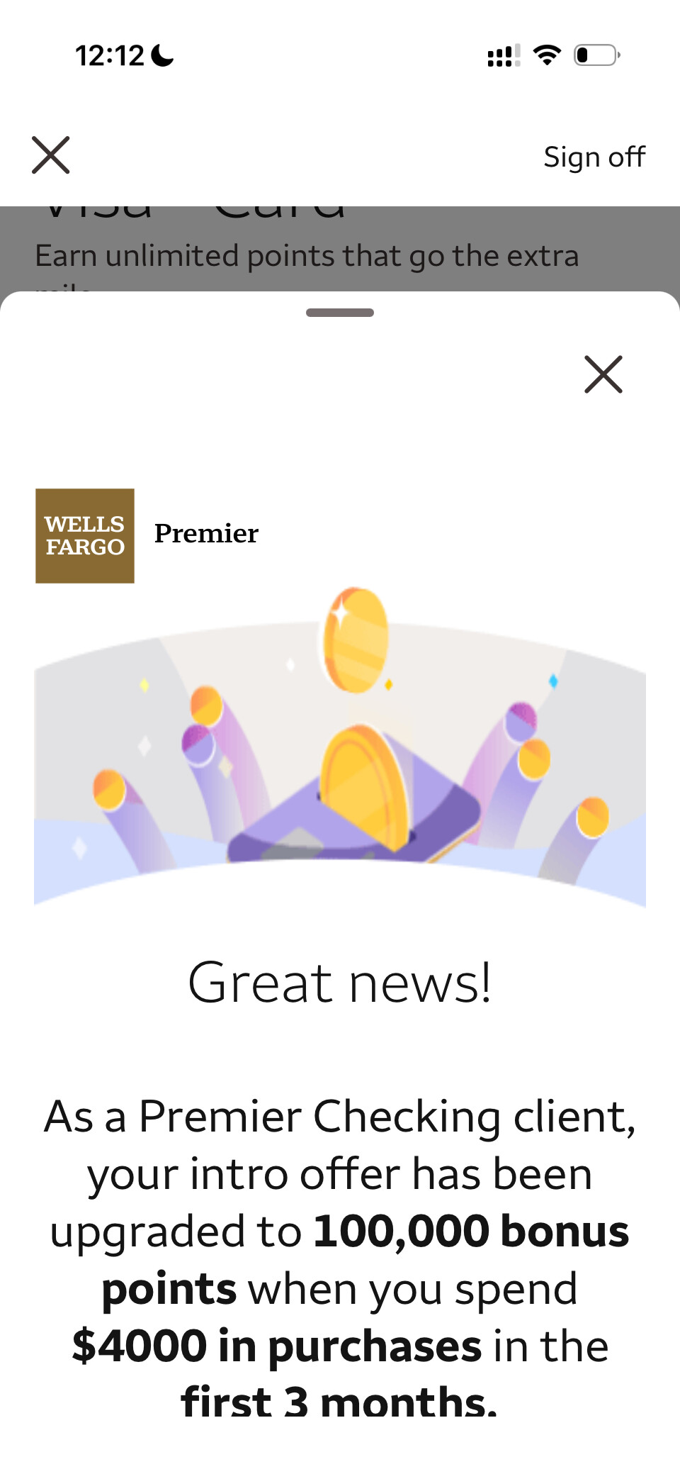 秒批 给了38K credit 昨天刚收到之前薅的$2500 for 250K 突然感觉WF也挺好