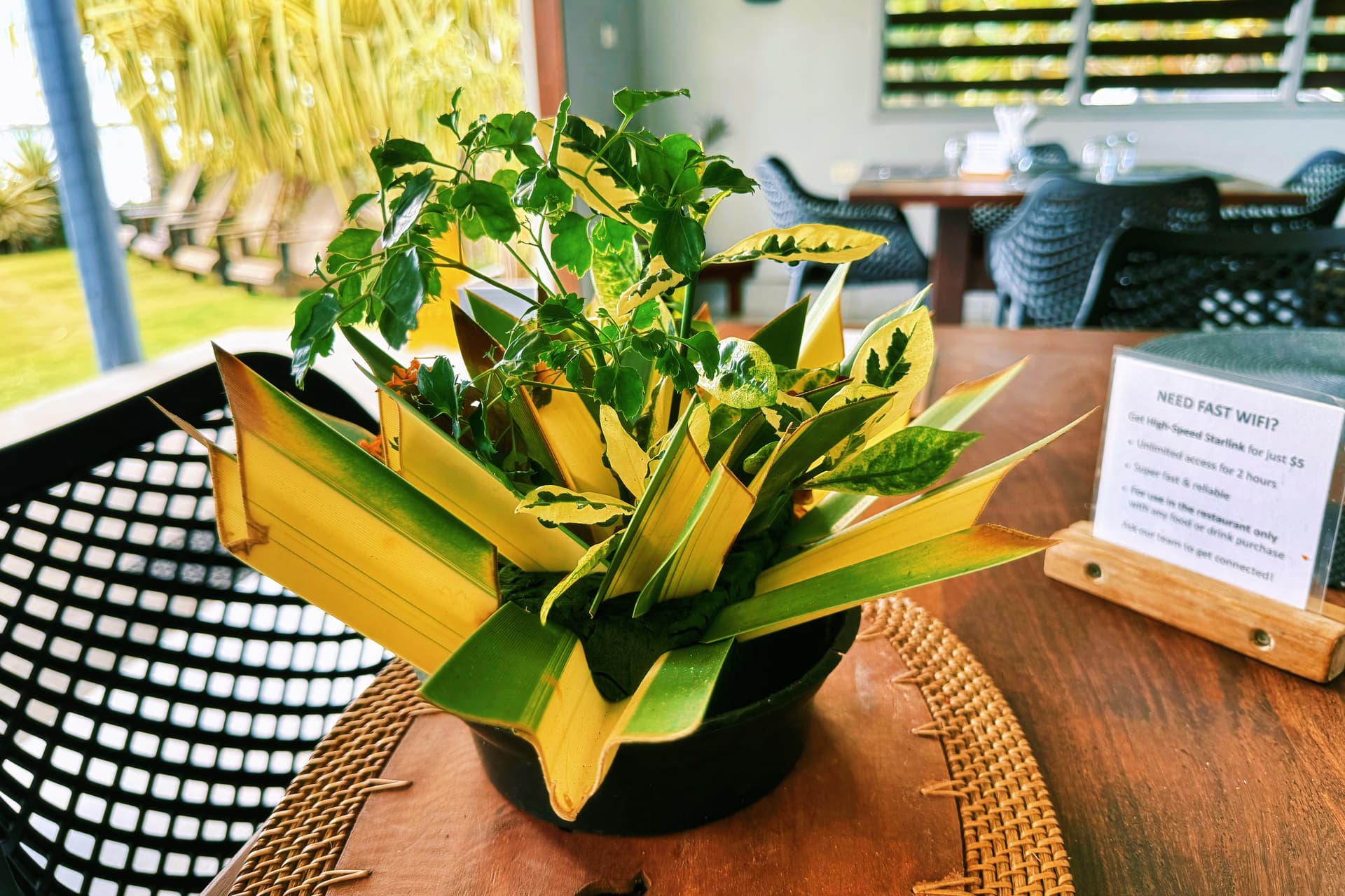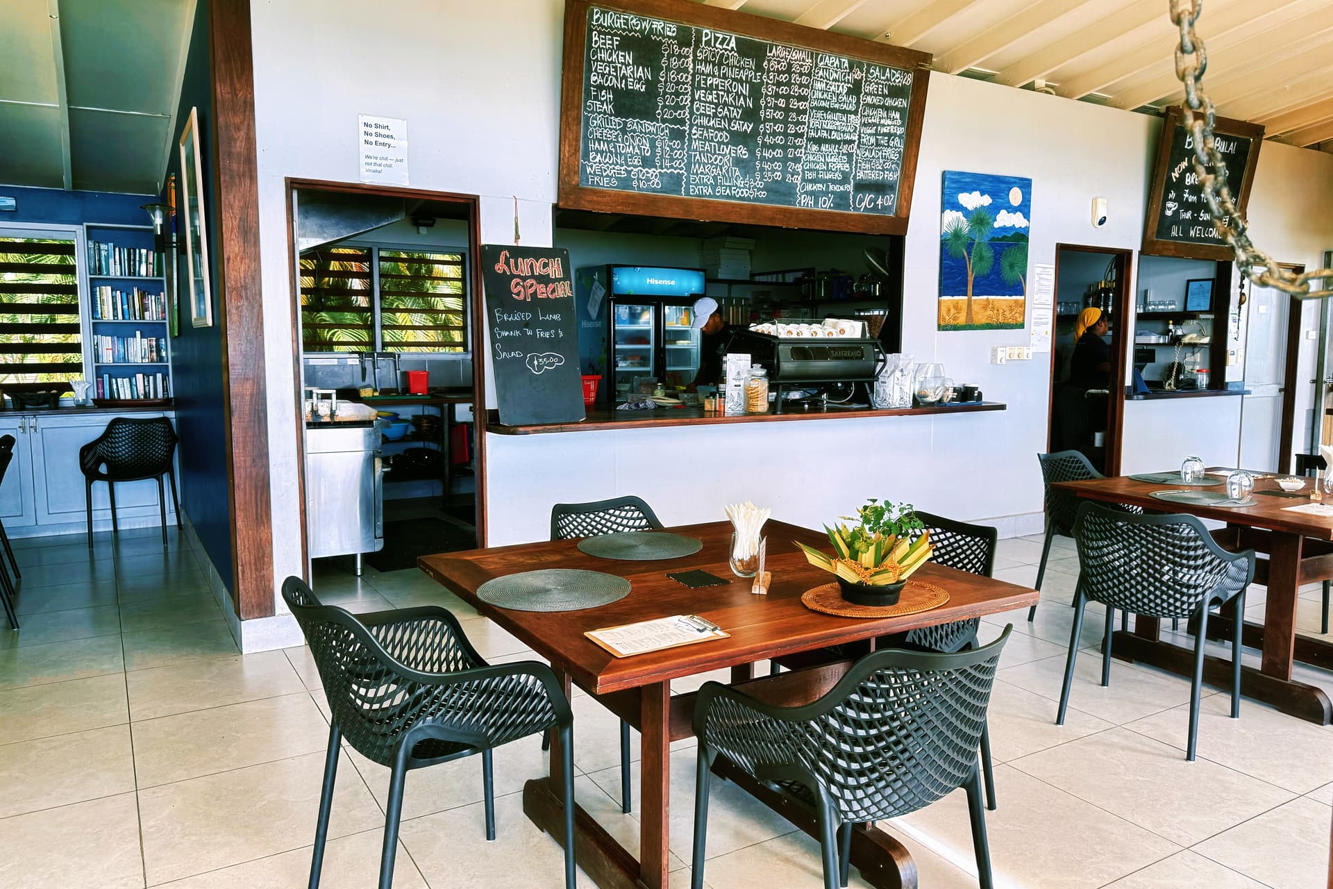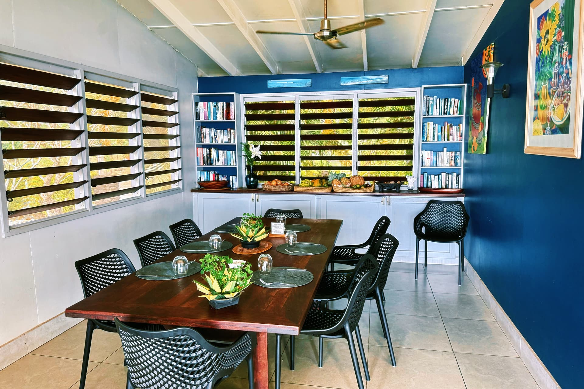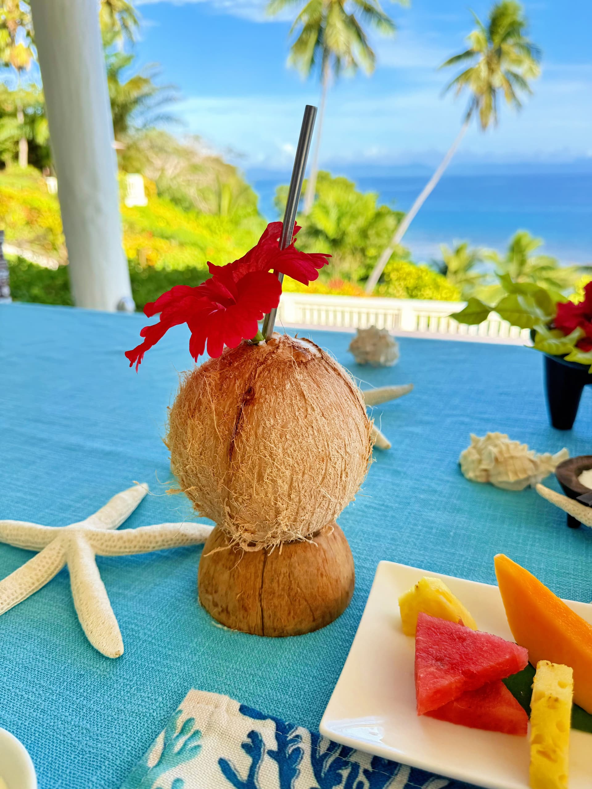 每天都有不同的主题:热带水果拼盘、现烤可颂、椰子酸奶、自制果酱、现榨果汁,搭配主厨即兴的热菜(例如斐济式椰汁鱼块、芋头饼)。你可以选择在无边泳池边或主餐厅享用,伴随晨光与海浪声,极致惬意。
