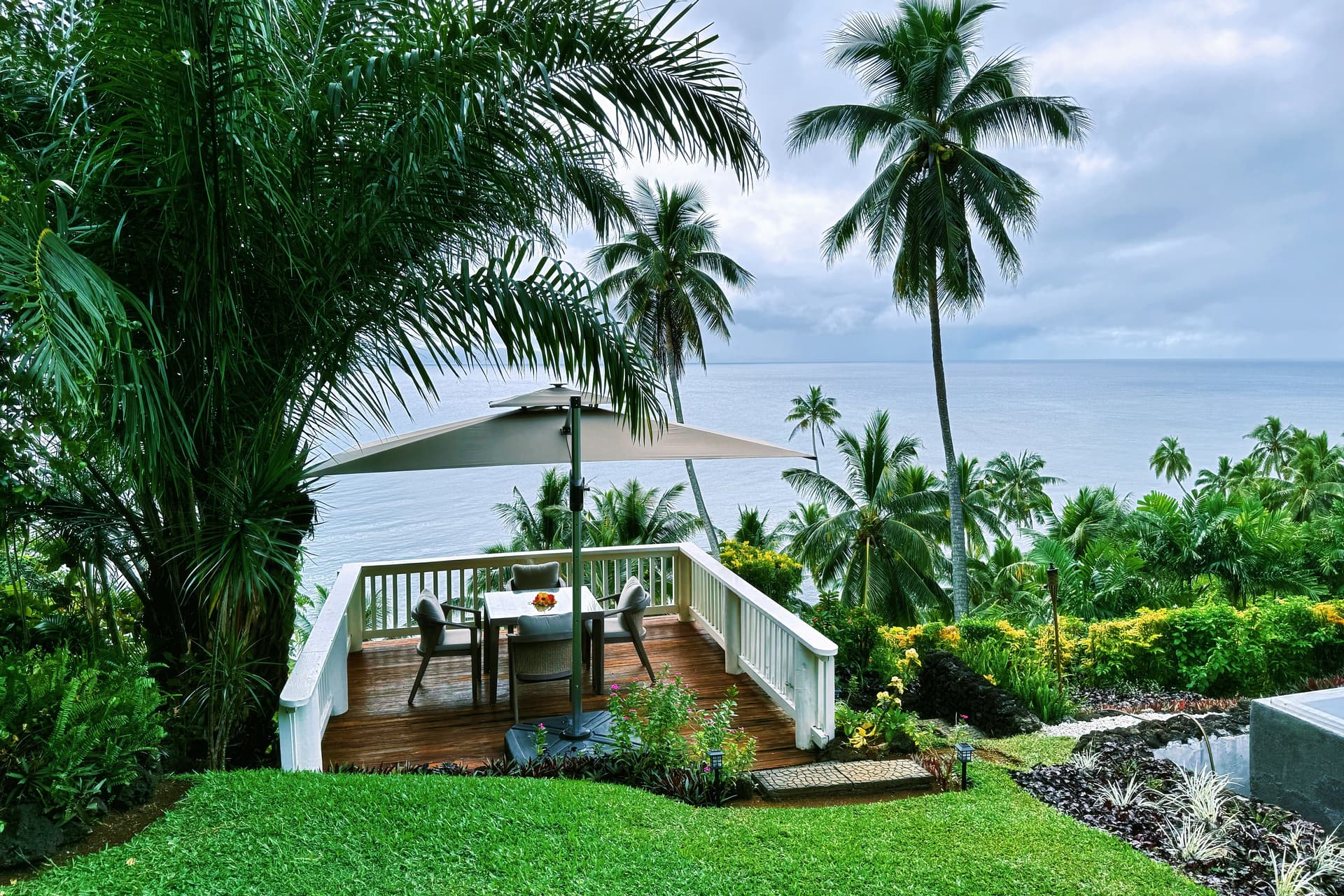 在研究small luxury hotel全包酒店时,大溪地、马尔代夫、塞舌尔、夏威夷……每一个岛都有独特的气质。而最终选择斐济的Taveuni岛、入住临海的Raiwasa Private Resort,完全是因为三个关键词:私密性、服务、自然性。Raiwasa在斐济语中是向海眺望 (Rai的意思是从高处眺望 / 眺望;Wasa的意思是海 / 大洋)。