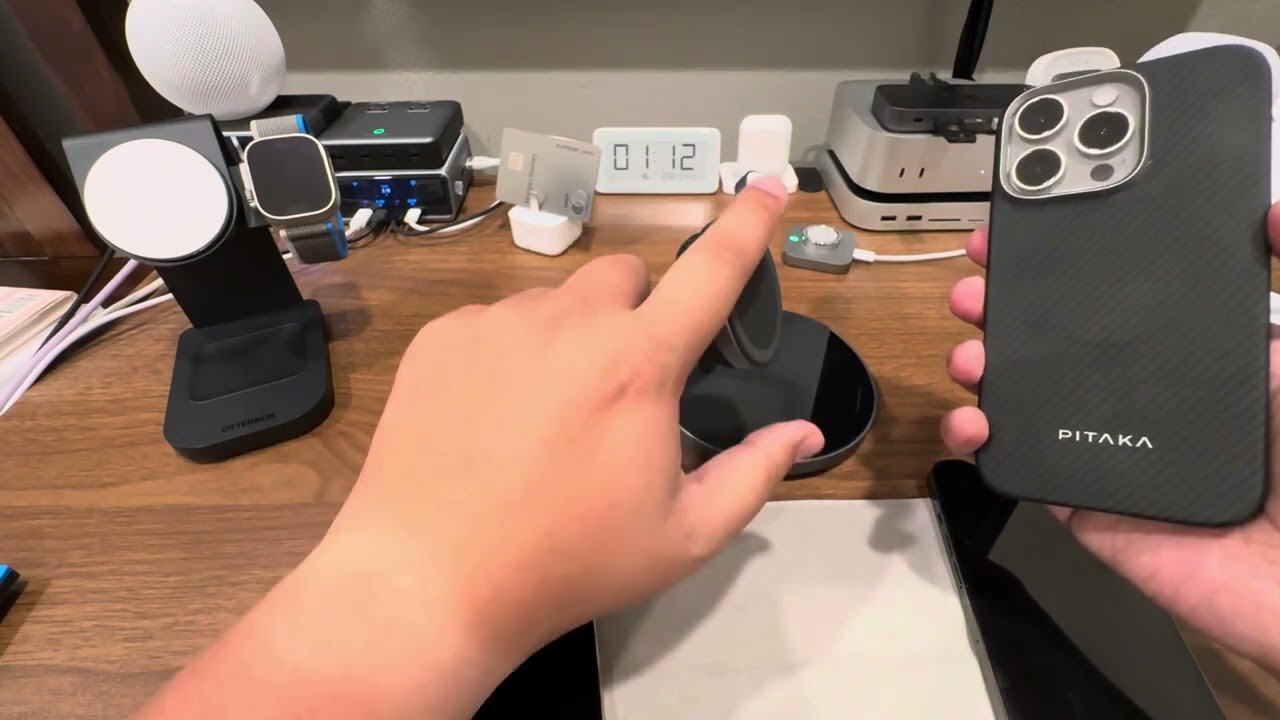 这种转轴设计本意是让充电器有更大的兼容性和灵活性,可以控制手机的可视角度,但是由此导致的问题便是取下手机时,容易让转轴位移。所以如果我使用一些手机壳的磁铁比较强的话,取下手机时,会带动起充电头位移,这种体验就比较难受。我测试下来,Apple 官方的磁吸背壳的吸铁强度和手机类似,但是 Pitaka 它们家的磁吸就要强很多,这在某些场景例如车载导航情况下是优势,但是在这种带转轴的充电器(例如这里的 Anker)就导致取下时整个基座会位移,以及充电头角度变化,这在拿取体验上不如 Belkin 的 T 型 3 in 1 充电座。