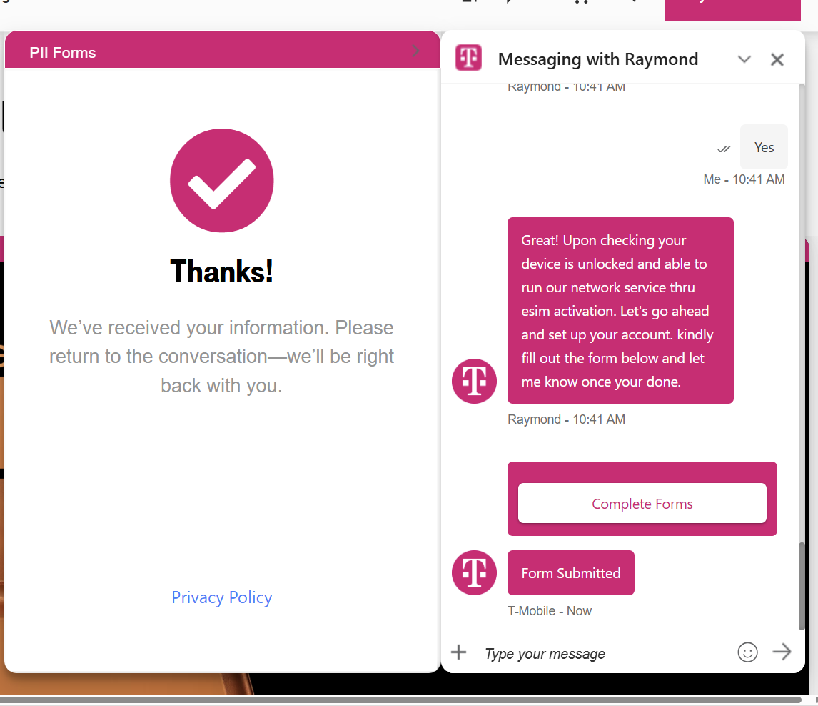 打开tmobile官网右下角chat就能,非常丝滑,表格里填一下驾照和ssn就行。