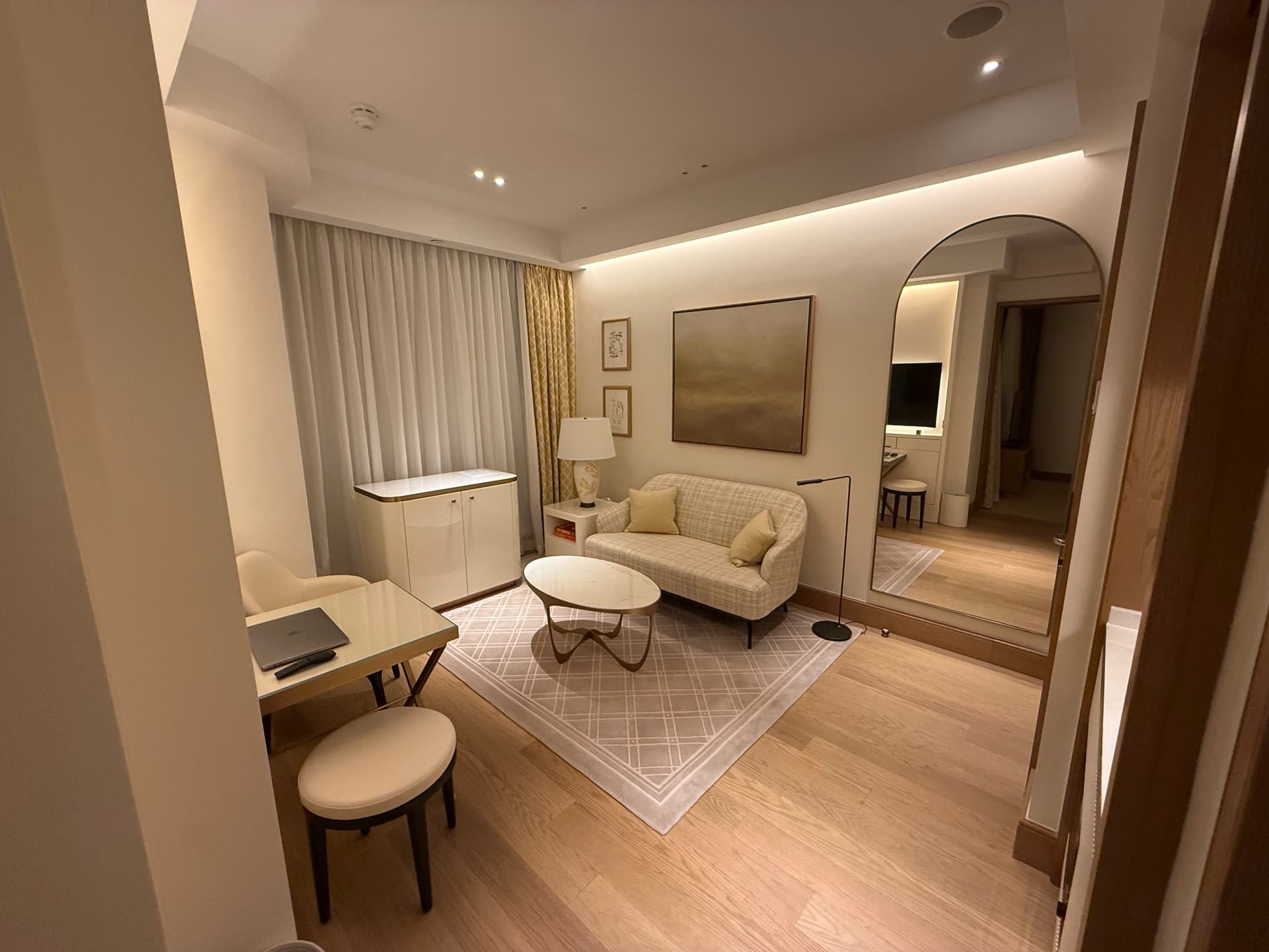 原本是点数定的丐房,check in的时候给升到了prestige king suite。但是作为slh且是香港的slh,面积肯定是不用指望了 ![]()