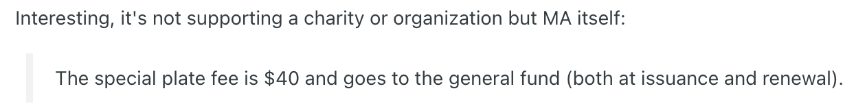 RMV官网可以申请,附申请链接,看list还有若干其他special plate可选,终于知道街上这些不一样的车牌怎么来的了