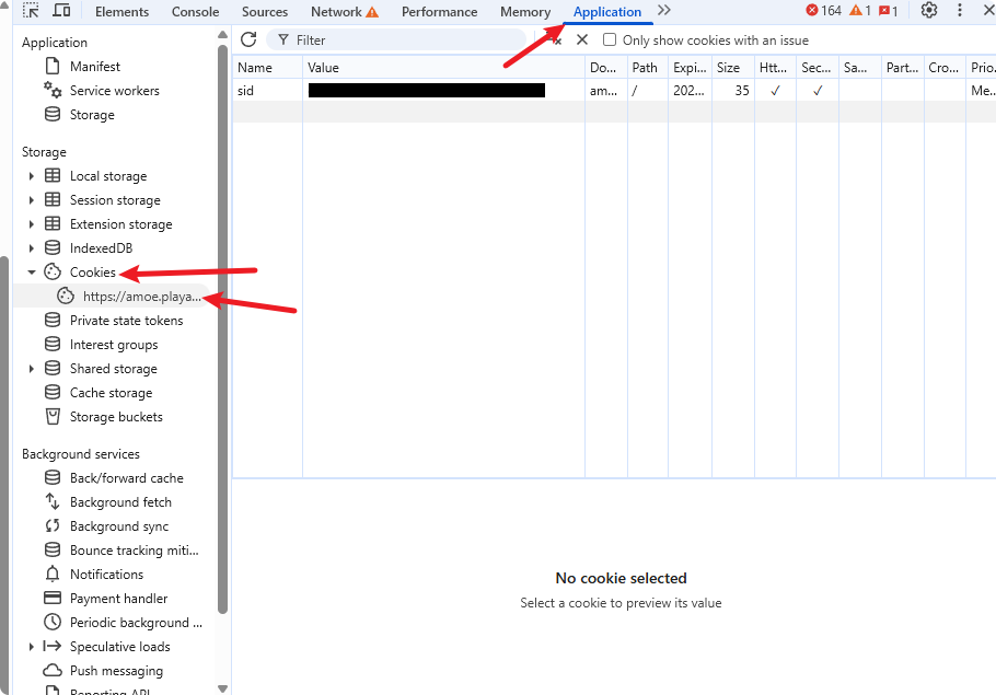 同样在F12窗口 点Application → Cookies → 能看到一个sid 复制值 并且在前面的代码最后添加–sid 即可