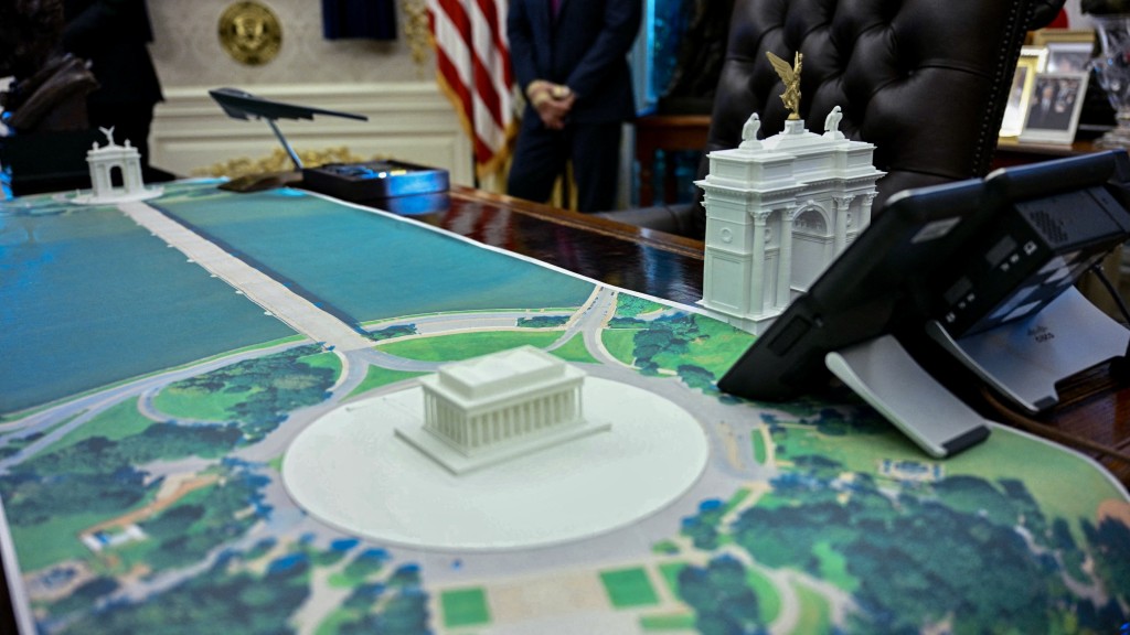 美國總統特朗普日前在白宮會見芬蘭總理,期間記者發現橢圓形辦公室的辦公桌上,放了一座法國凱旋門式建築的規劃模型。這座建築將比隔波托馬克河相望的林肯紀念堂還要宏偉,相信與美國明年慶祝獨立250周年有關。