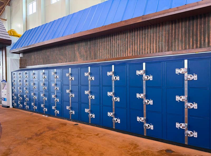 场内有足量密码柜,分为中杯大杯超大杯,手机扫码自助租赁。我们租了个大杯存包,$26 不限时、不限开门次数。