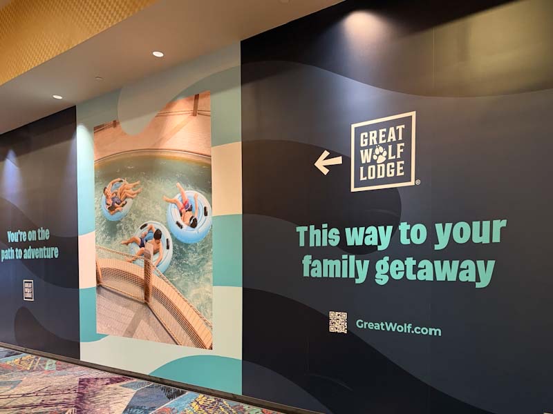 Great Wolf Lodge 一进门有一排 check-in kiosk,扫描 email 里的二维码,再扫描一下 ID,然后刷一下信用卡,就可以自助打印手环了。手环是防水的,而且一旦戴上就不能无损摘下来(防止倒买倒卖)。办好手环的同时会收到一条短信,上面写着房间号。接下来刷开房门、进入 water park 和买东西都是用这个手环了。办手环的时候还可以选择是否给小孩付款权限,挺人性化的。