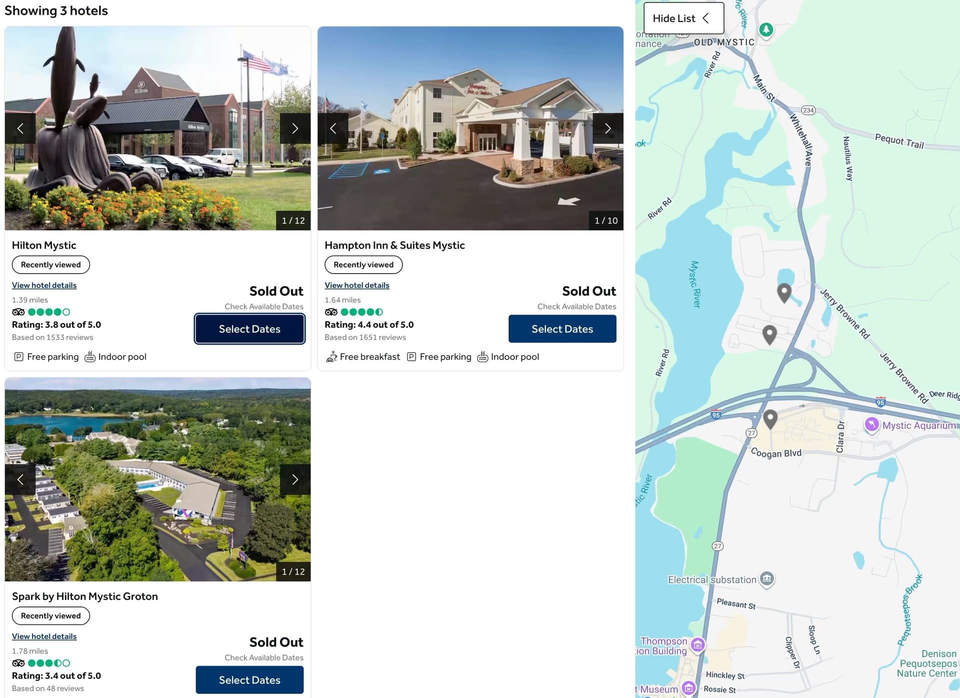 可选范围并不大,简单看了一下就决定住在 Hyatt Place Mystic 了。为什么呢?