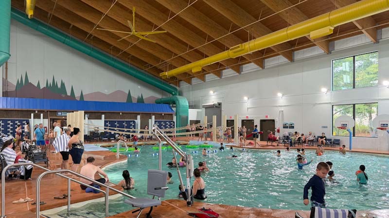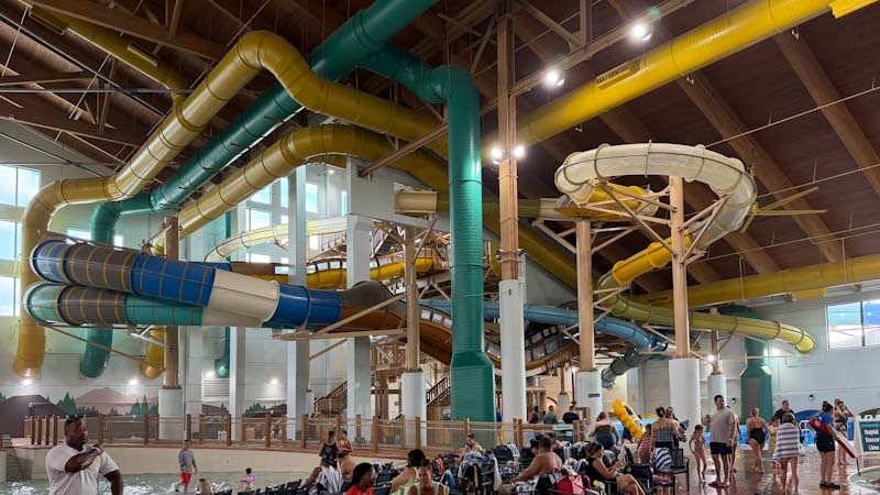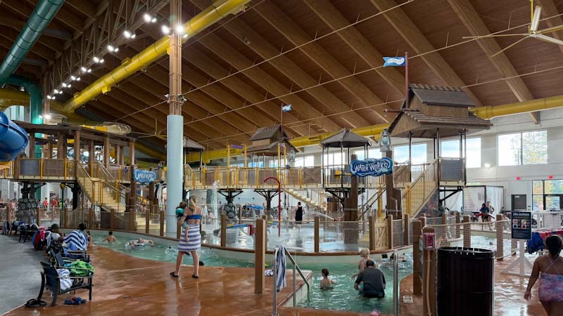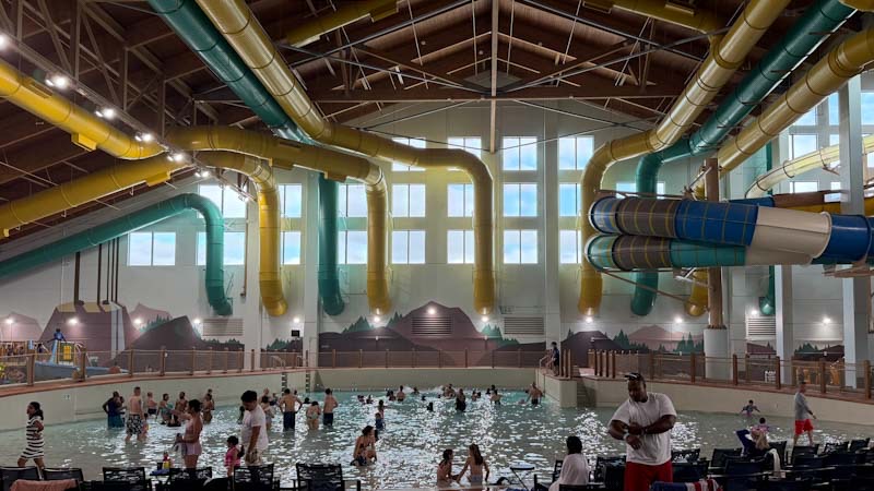 整个 Great Wolf Lodge 镇场子的项目便是这个 indoor water park 了,有各种水上滑梯、tubing、人造海浪、lazy river、水上篮球和浮萍,还有一些 playground 童叟无欺。水温 83 度,室内温度也很舒服,从水里出来自然风干也不觉得冷。人虽然不少,但也没有显得拥挤,每个 ride 的排队时间大约 5–10 分钟。