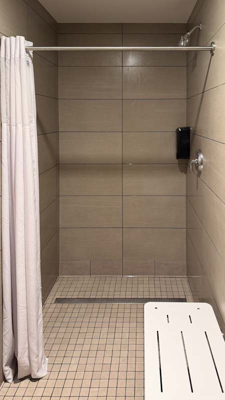 更衣室内有多间独立淋浴房,每间都有浴帘和椅子、能锁门,还有和 Equinox 同款的泳衣甩干机。所以哪怕退了房,把行李放到车里再回来玩,也完全没问题。
